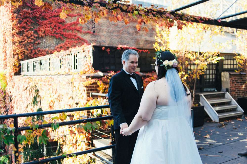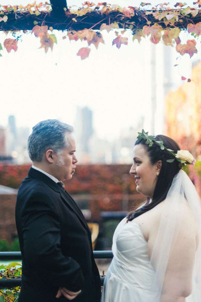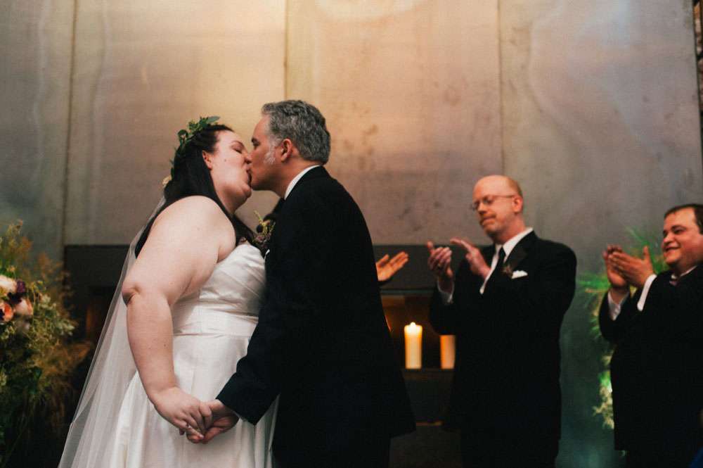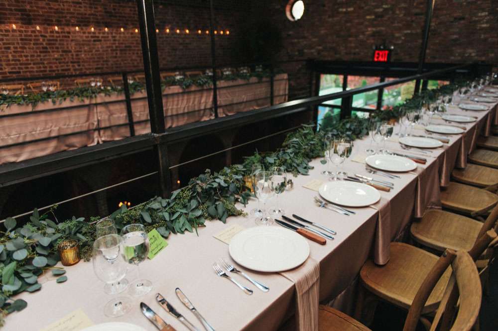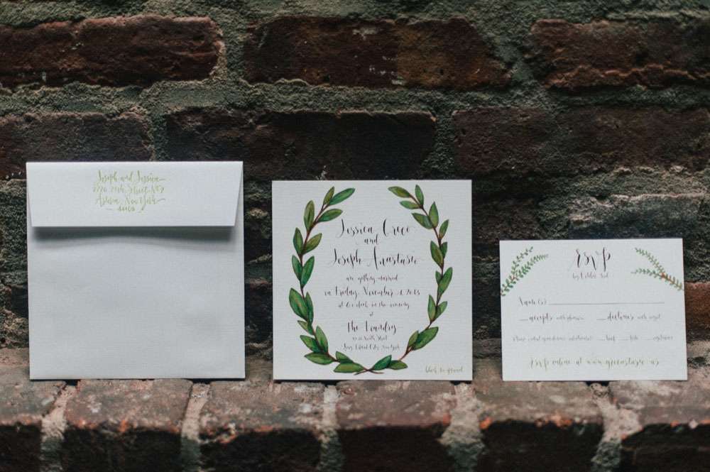 “I would call our wedding a strange mix of themes, none of which would appear to make sense in a list, but all of which melted together to be very ‘us’,” she explained. “The location, an old iron foundry, had a very industrial feel that appealed to the groom’s interest in NYC history, while the ivy-covered walls inspired the greenery-centric style of the invitations, signage, and bridesmaid styling.”