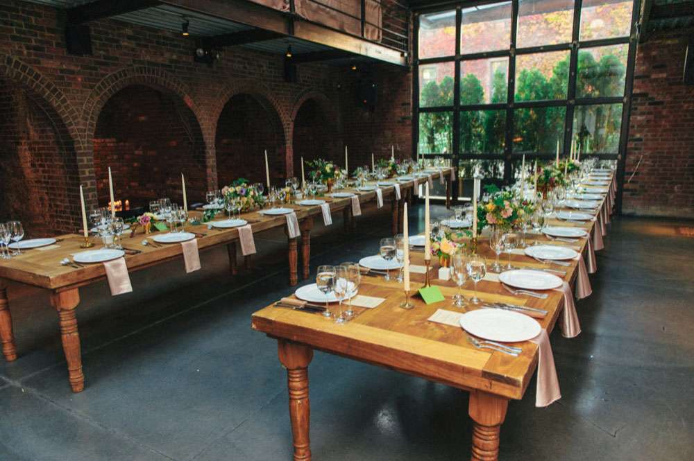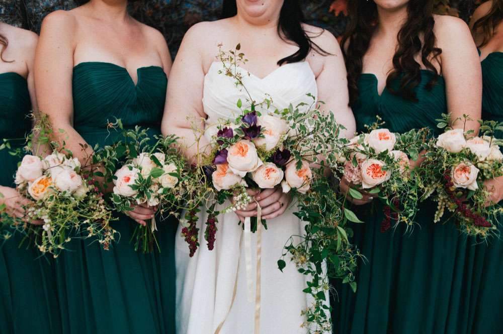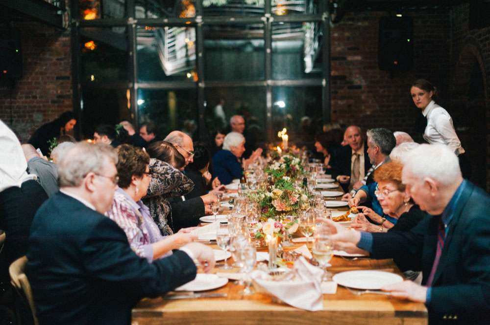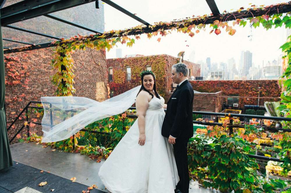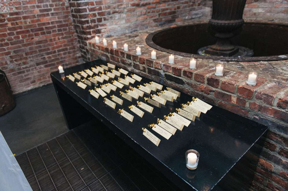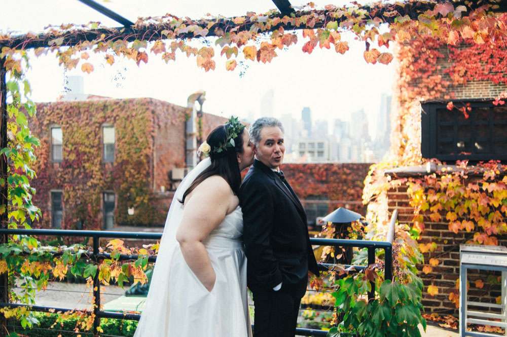 “I would call our wedding a strange mix of themes, none of which would appear to make sense in a list, but all of which melted together to be very ‘us’,” she explained. “The location, an old iron foundry, had a very industrial feel that appealed to the groom’s interest in NYC history, while the ivy-covered walls inspired the greenery-centric style of the invitations, signage, and bridesmaid styling.”