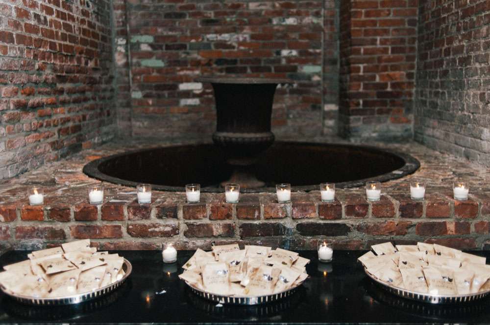 “The biggest splurge was definitely the venue, and the rental of chairs, tables, dishes, and etc. to furnish the space. We didn’t want to have a wedding at a ‘wedding mill’, and when we visited at The Foundry, we knew we had found the right location. The building itself is very industrial in style, yet you customize all your vendors and rentals so it feels very personal. It doesn’t take much to make the space look incredibly beautiful, between the industrial details and the ivy growing up the walls both inside and out. A little candlelight, some truly beautiful flowers, and a few small touches turned The Foundry into this ethereal wonderland.”