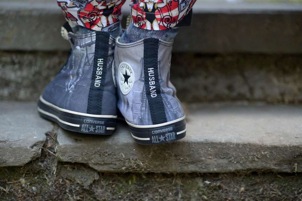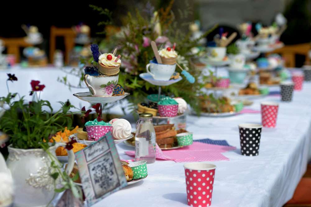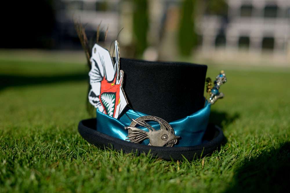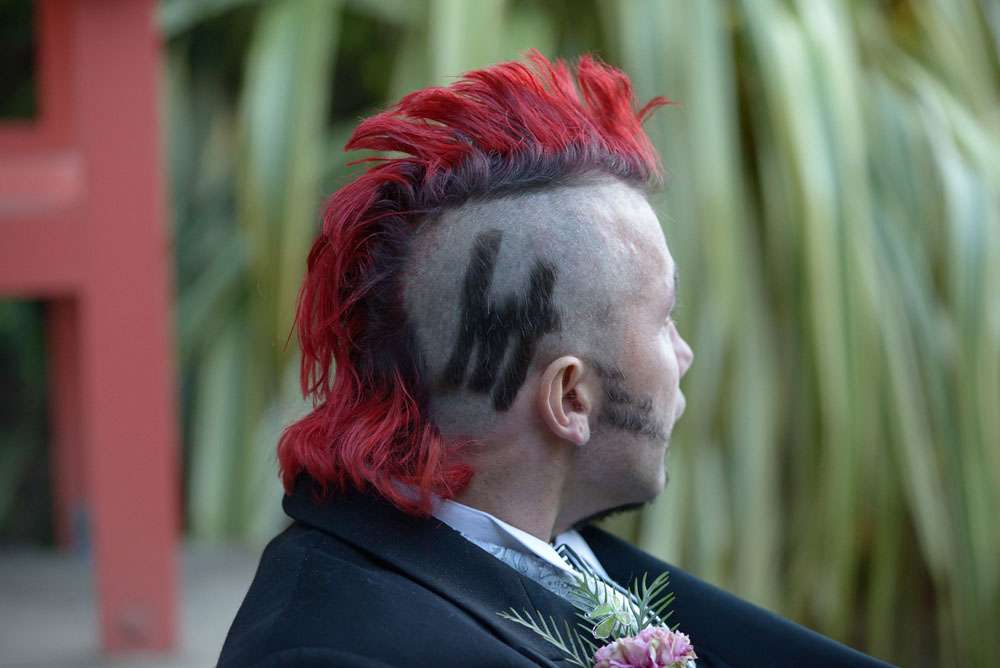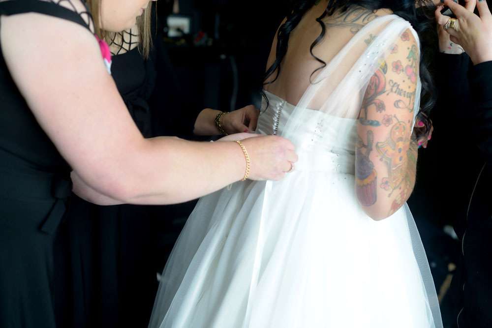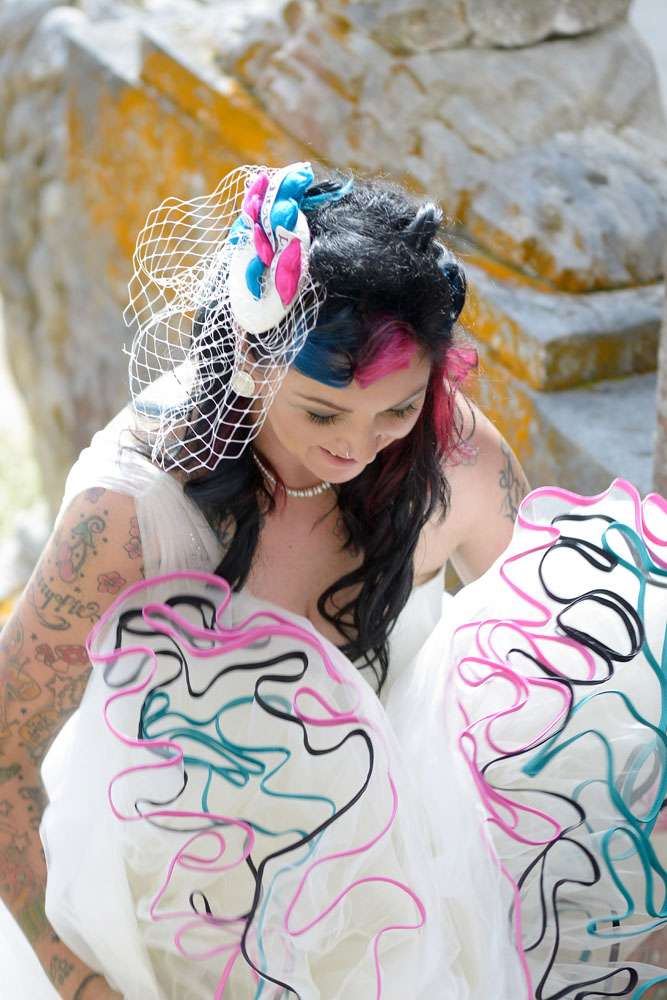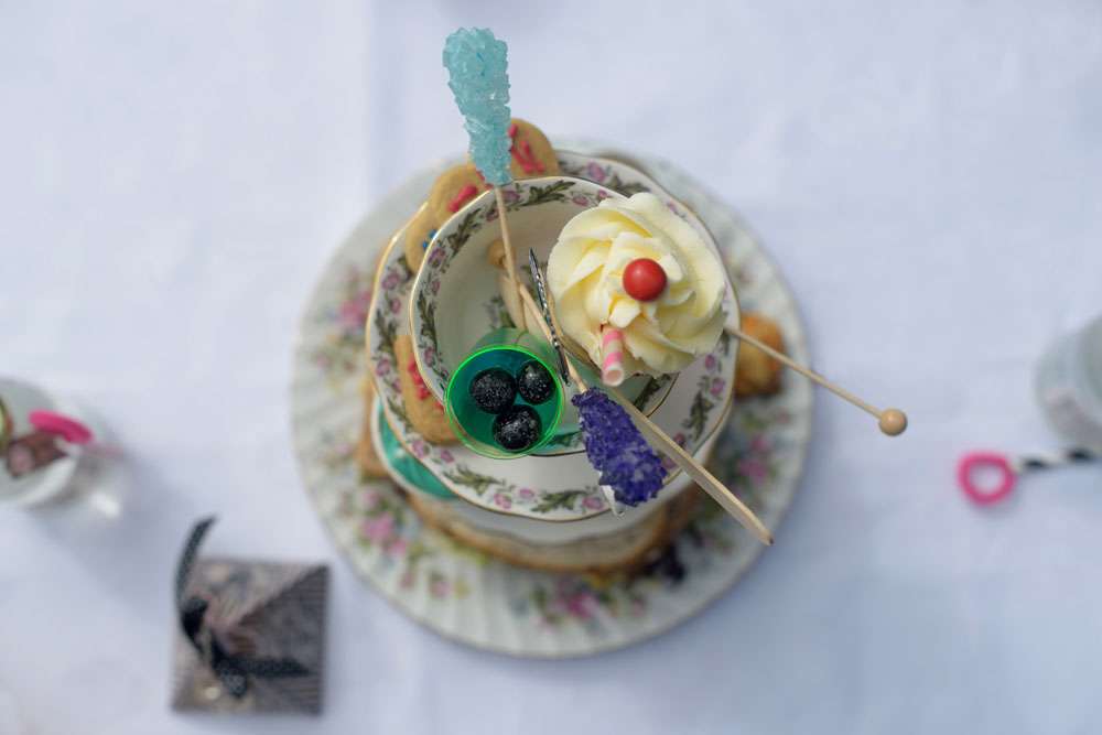 “We are both a little bit alternative,” she continued. “Nick never gave up his mohawk or the crazy lines shaved on his face and I love the rockabilly scene. Our wedding was a ‘Vintage Mad Hatter’s Tea Party.’ I made most things myself, hours spent at the dining table while Nick sat patiently next to me, advising me and playing scrabble on the iPod.”