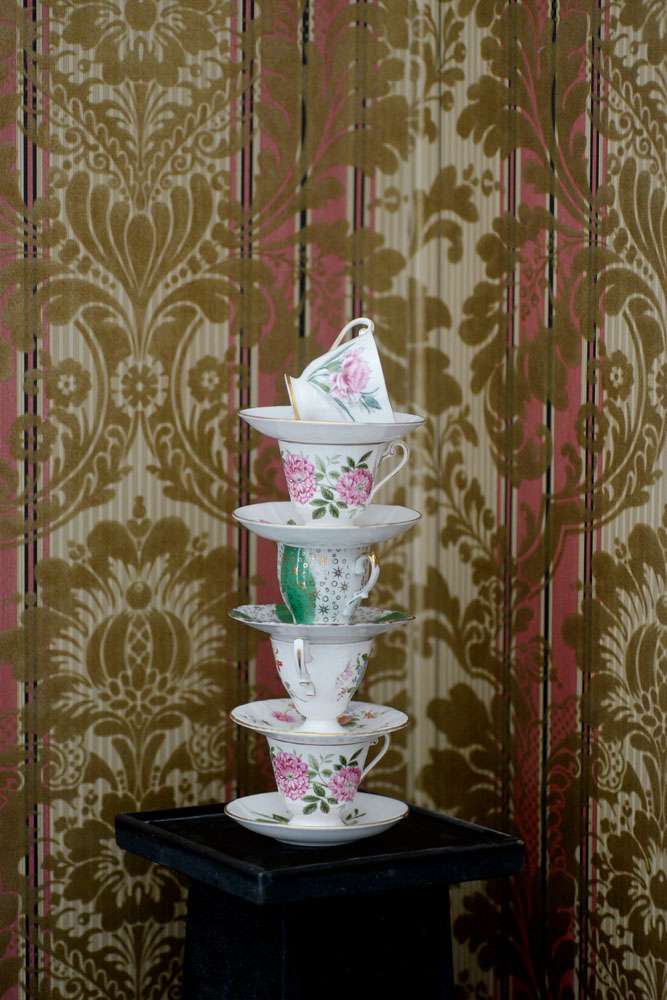 “I drilled vintage teacups and china and glued together tea cups! I made wedding favours, jars of jam, heart shortbread, cookie mix, truffles and mocha mix. Bottles of bubbles and sherbet… I made my bouquet, the wedding comment cards and box, Nick organised a rotating box for the wedding cards.”