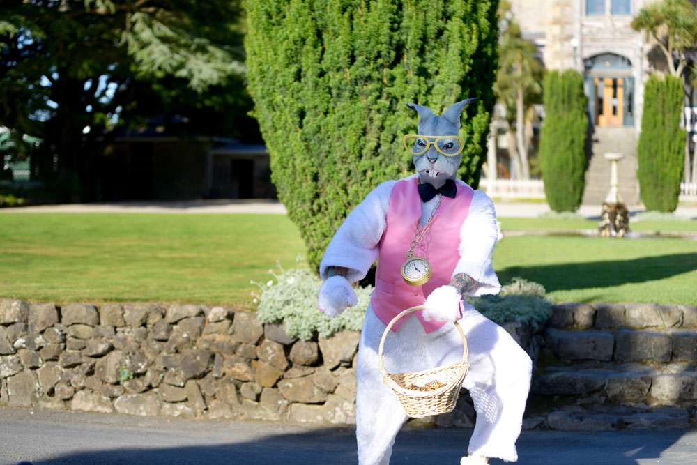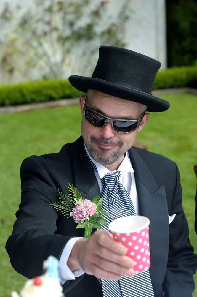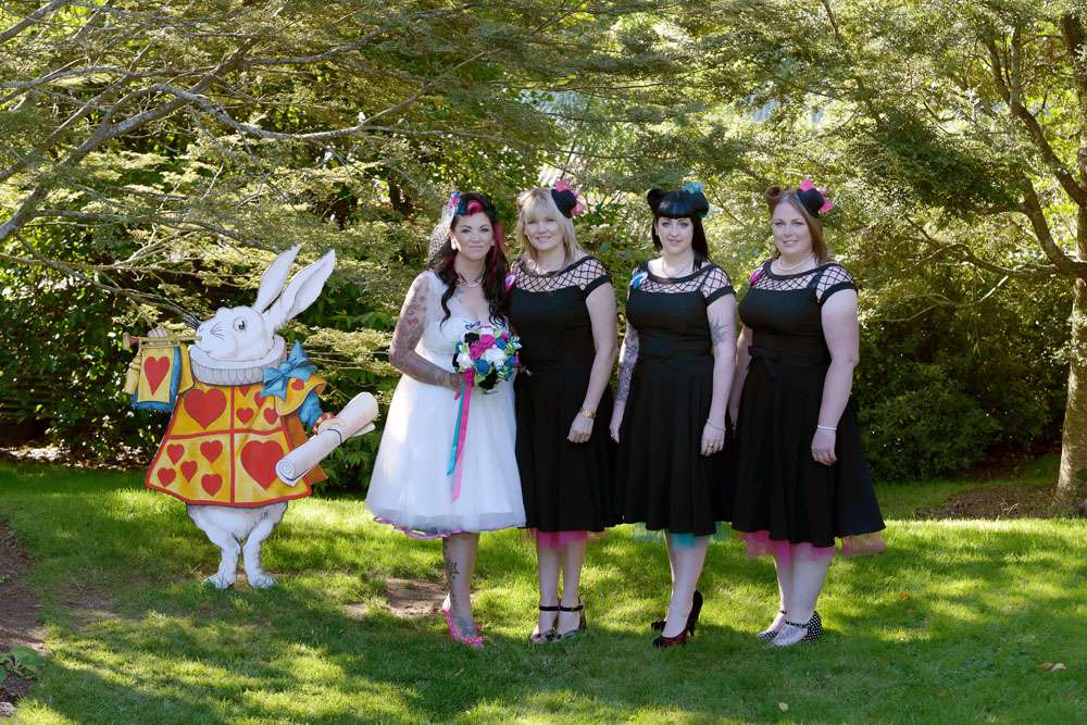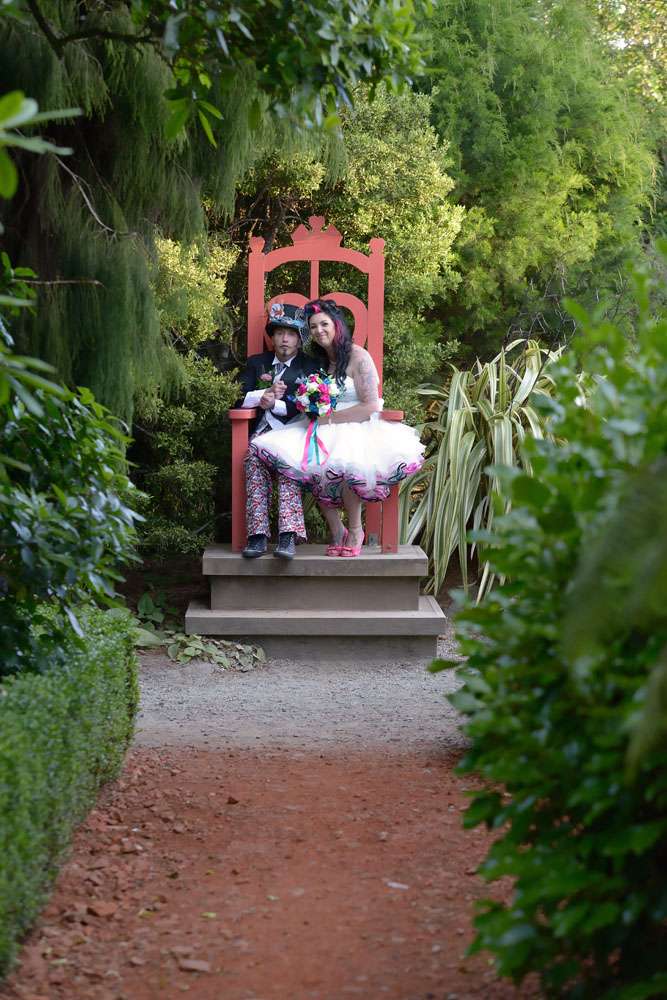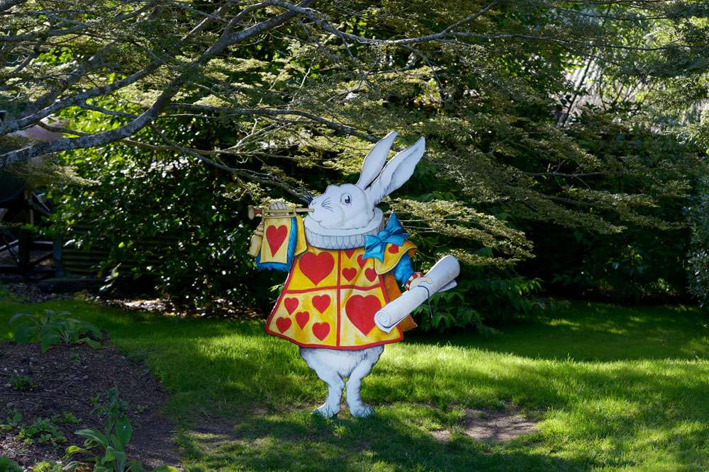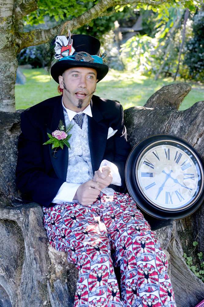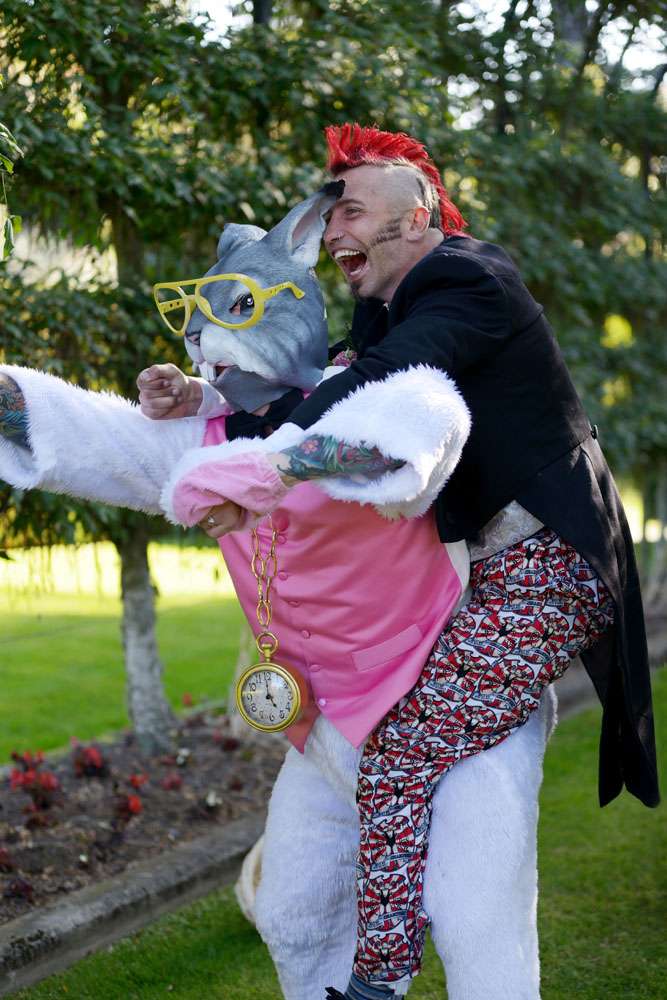“When we had our second wedding celebration, we had the tea party again in the Alice in Wonderland themed garden at the castle and once again Shane was there as our white rabbit! He took on a whole new persona in that outfit and loved it… so did the tourists visiting the castle!”