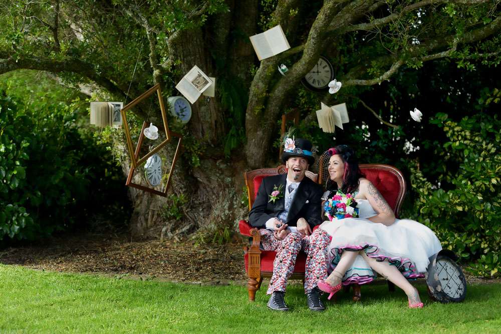 Nicola and Nick were married on 29th December at Larnach’s Castle in Dunedin, New Zealand. It is the only castle in the country and is owned by Nick’s family. Angela Jane Photography was there to capture this special day. The wedding had a mad hatter’s tea party theme!