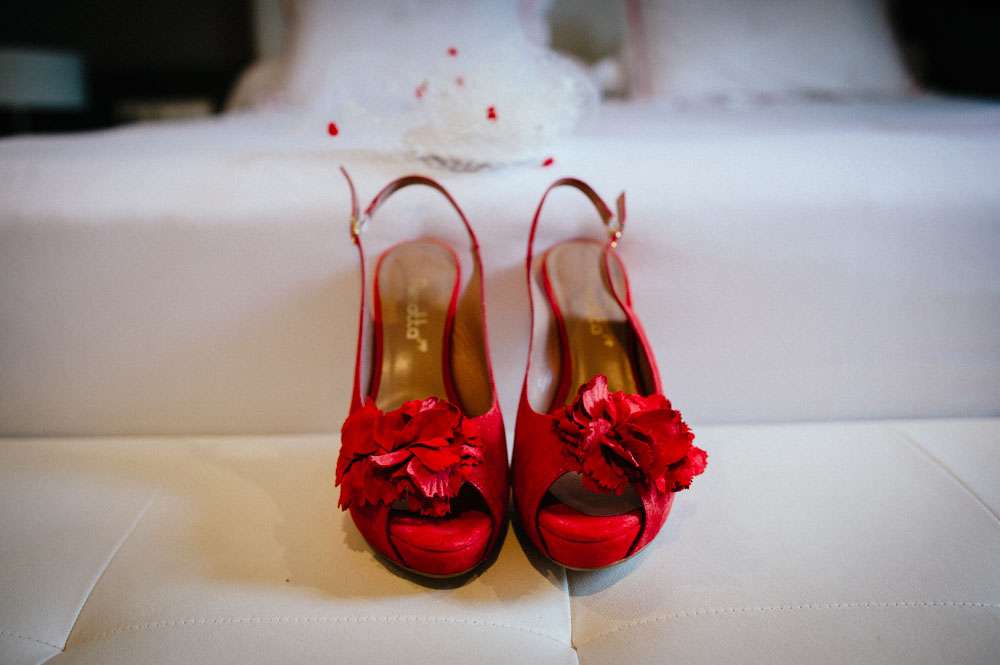 “A lot of things we did by ourselves. For example, the table seat plan. We bought a board and a lot of white and red fabric. We covered the board with the fabric and we made a garland with the words ‘Find the key of your seat’. We bought a lot of little keys and put them with a card in the board. On each card we wrote the name of the guest and the seat. The keys are very special for us because the invitations had a heart lock and key with these words: ‘If love is strong, stay indelible as a tattoo’.”