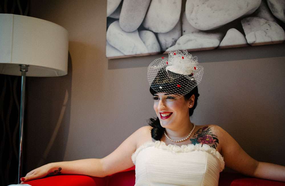 “Our biggest expense was our venue”, the bride concluded. “We thought that it was a special place and they served great food! I also spent a lot of money in my bouquet. It was made only for me from red fabric. However we saved on lots of other things like our rings. We wanted special piece and I found a collection of jewellery based on Rock n Roll from Aristocrazy. They were cheap because they were gold plated but we don’t mind that!”
