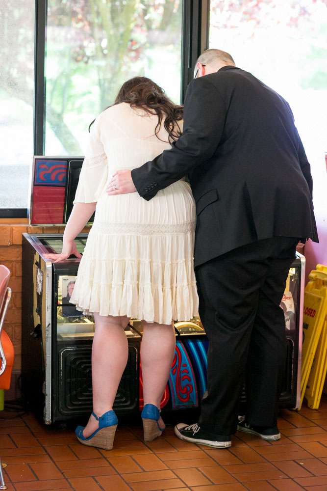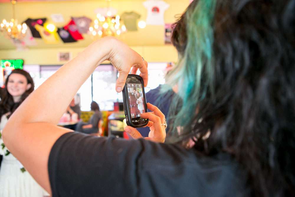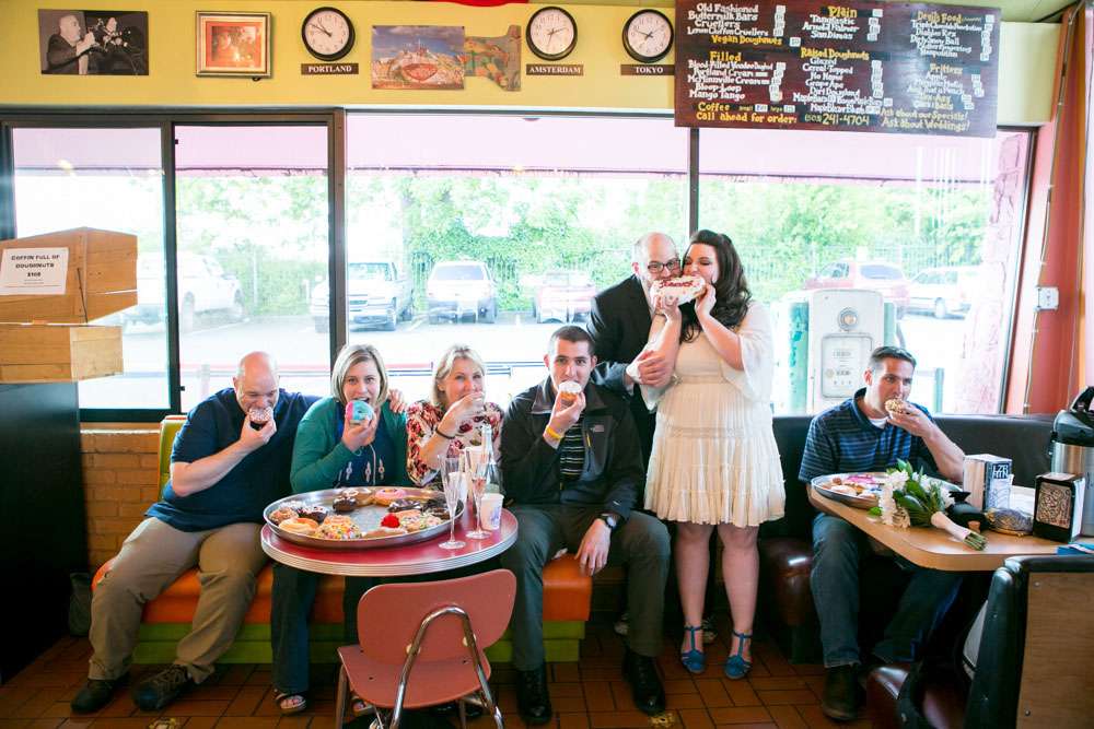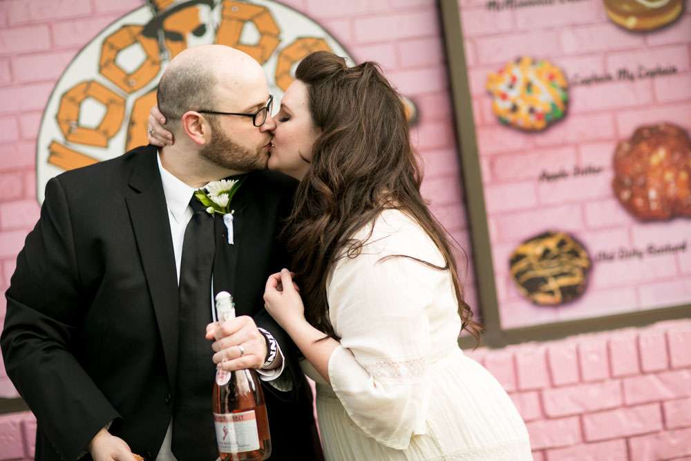 “We chose Voodoo Doughnuts as our wedding location because when we first met and fell in love, we would go there every Sunday night at midnight and have a date”, she continued. “The location was another part of our wedding telling our story, and if it seems quirky or alternative, it’s probably because we are!”