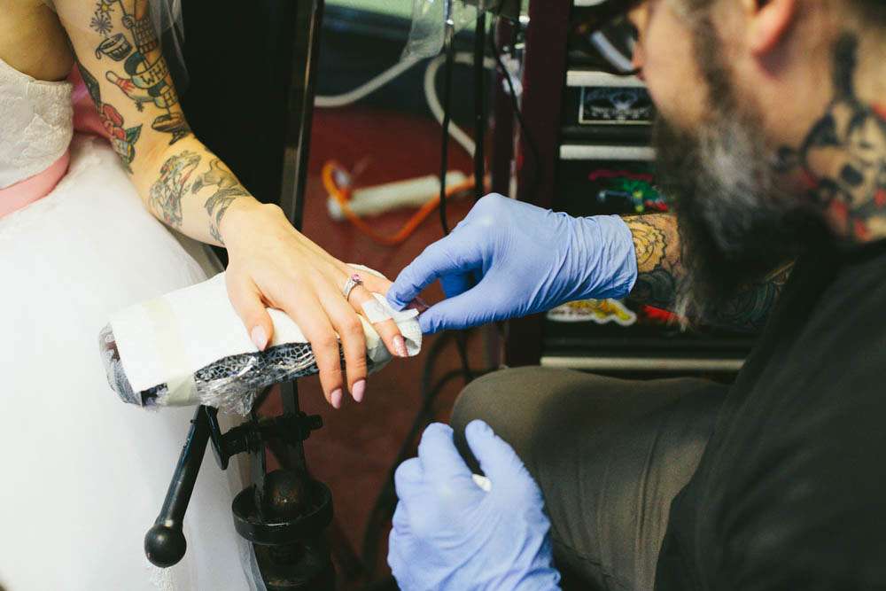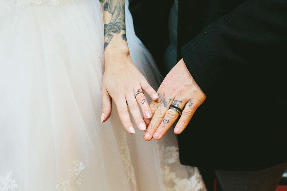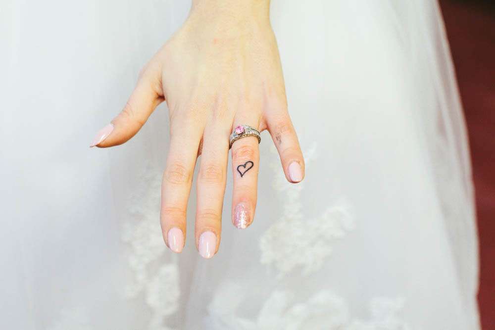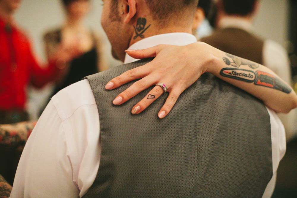 “Our wedding day tattoos defined the day perfectly”, she said. “During a romantic dinner just before the big day we each drew a small heart. Then during the cocktail hour just after our ceremony, our awesome photographer, Stephanie Kaloi, drove us to see the tattoo artist. I got the heart that Paco drew tattooed on my ring finger and he got the heart that I drew on his. I like to say that we carry each other’s hearts… literally. We didn’t have any doubts about getting them because we believe so fully that our love is just like a tattoo – forever. The quiet moment we spent together admiring our new tattoos before heading back to the party is one of my favorite memories of the night.”