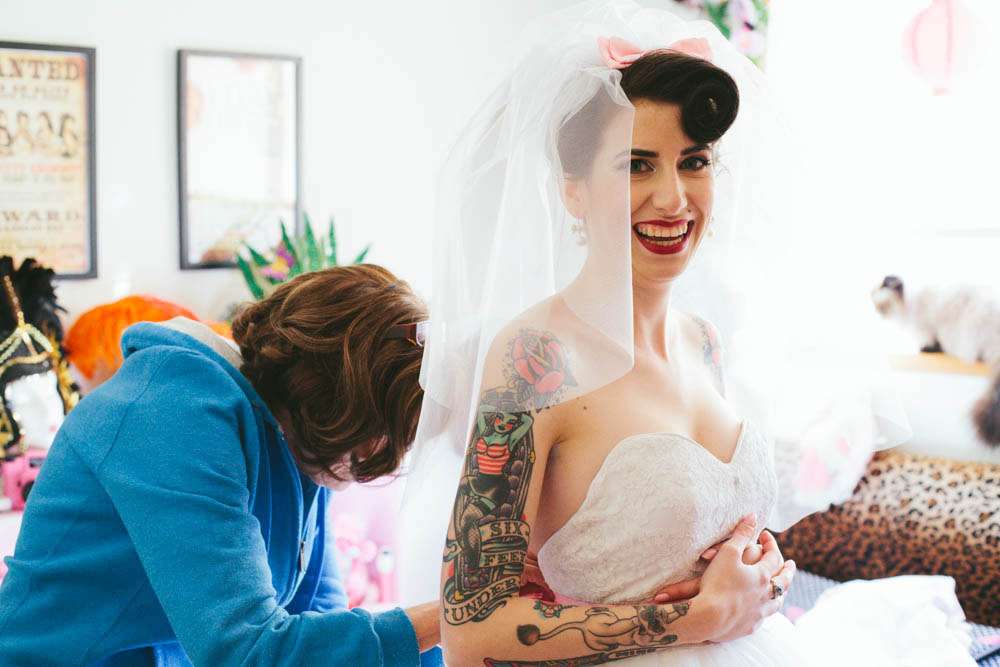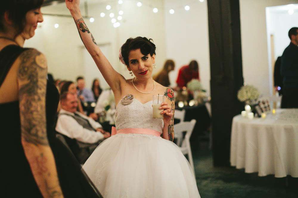 If someone were to ask me to list all of my favourite things, nearly everything in this wedding would feature: cats, tattoos, Disney, ears, pink, 80s tunes, glitter… I mean goodness, what’s not to love?! The wedding was held at Union/Pine in Portland, in December.