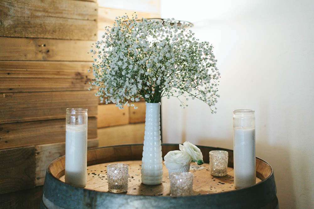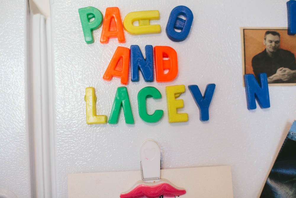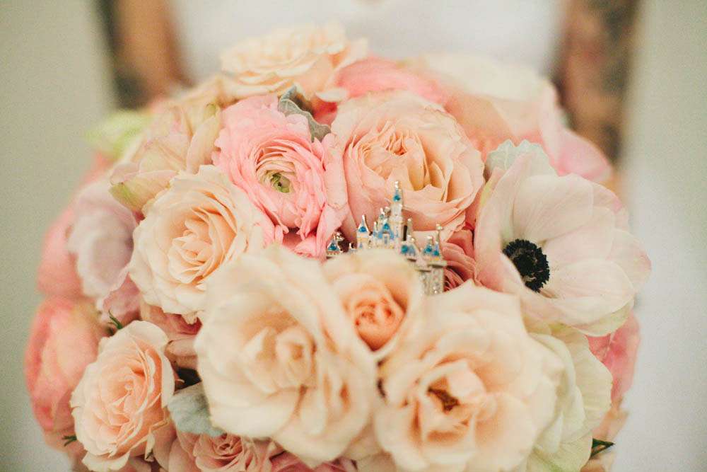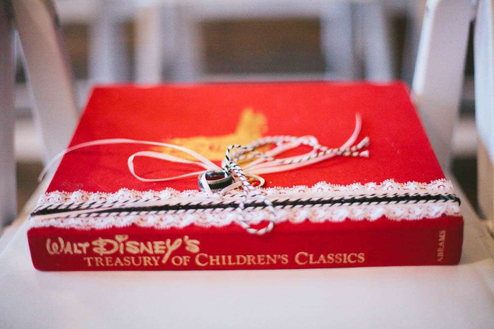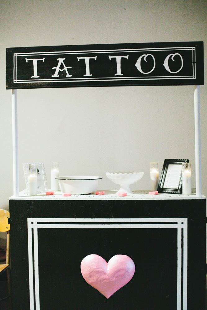 The wedding also had a lot of DIY elements including paper lanterns, the tattoo parlour and the stationery. “We wanted to incorporate as many DIY elements as possible for a personal touch, so we each took on a few projects. Paco created beautiful paper lanterns to hang above us during the ceremony. They were inspired by a favorite Disney movie, Tangled. He also built the wooden ‘tattoo parlour’ booth from scratch. It looked a little like a lemonade stand with a handmade ‘TATTOO’ sign and heart detail on the front. It was awesome! Guests put on their temporary tattoos there. I designed the programs, menus and all other signs. I also hand painted a ceramic teacup card ‘box’, another Disneyland reference. We also did many smaller projects like gluing napkin rings, spray painting picture frames and tying plenty of bows.”