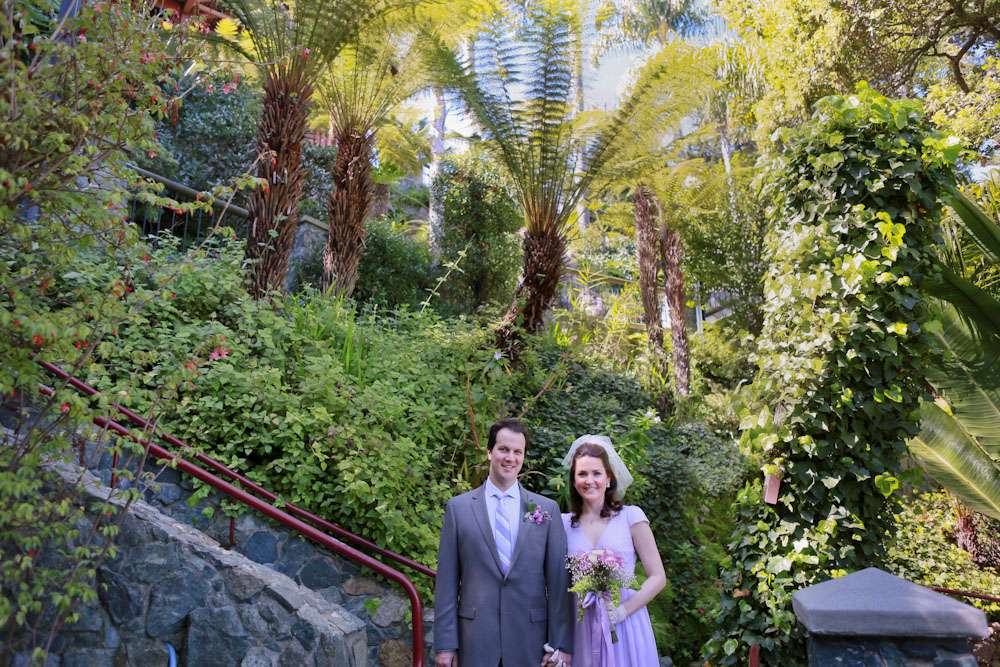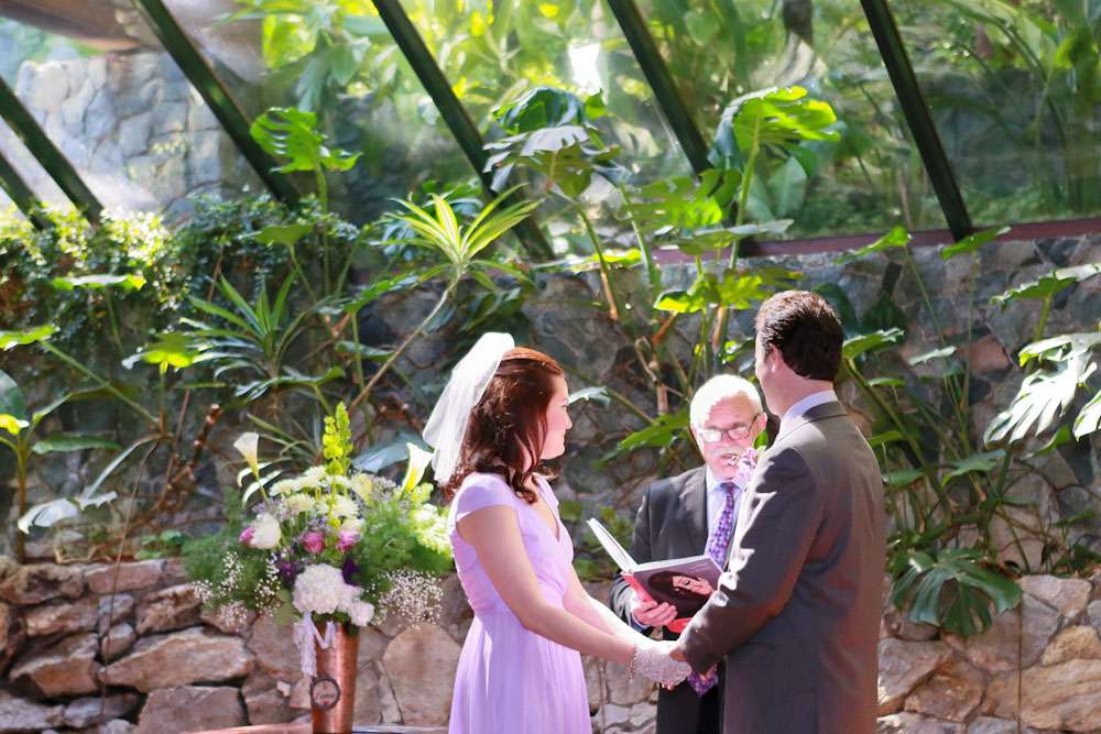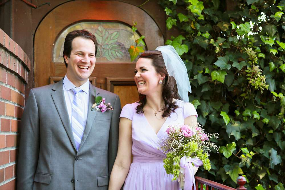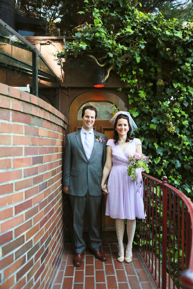 I fell in love with Erin and Jon’s budget wedding as soon as I saw it – I loved the cute, affordable and easy-to-DIY details, the beautiful venue and the bride’s lilac dress (which was actually a bridesmaid’s dress from J Crew). The day was held at Shadowbrook Restaurant in Captiola, California on the bride’s birthday (!) and was planned, in the most part, by her mother. She did almost everything herself, from chalk painting the mason jars to making the dessert trays from using vintage plates and tea cups.