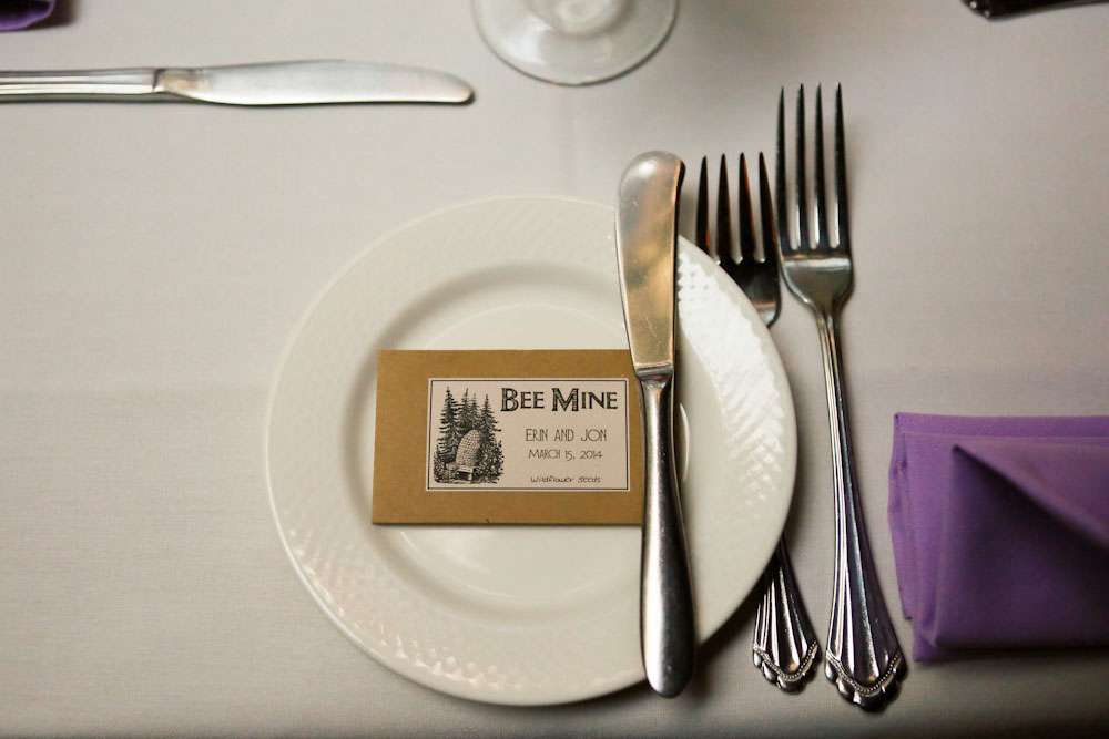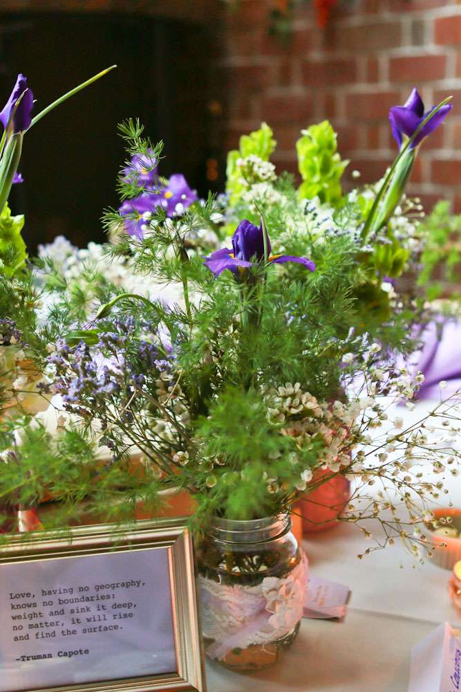 “My Aunt Sue also did all of our flowers. I’ve always looked up to her as a child. She has the best sense of style. When she volunteered to help I was so overwhelmed with joy. I wanted them to feel like them were picked from the wild and placed in jars. We kept with the lavender and purple theme and added accents of greens. Our favors that were packets of wildflower seeds were from Fairyland Bazaar on Etsy. Our guestbook, which was a hand painted tree, was from The Inky Bean.”