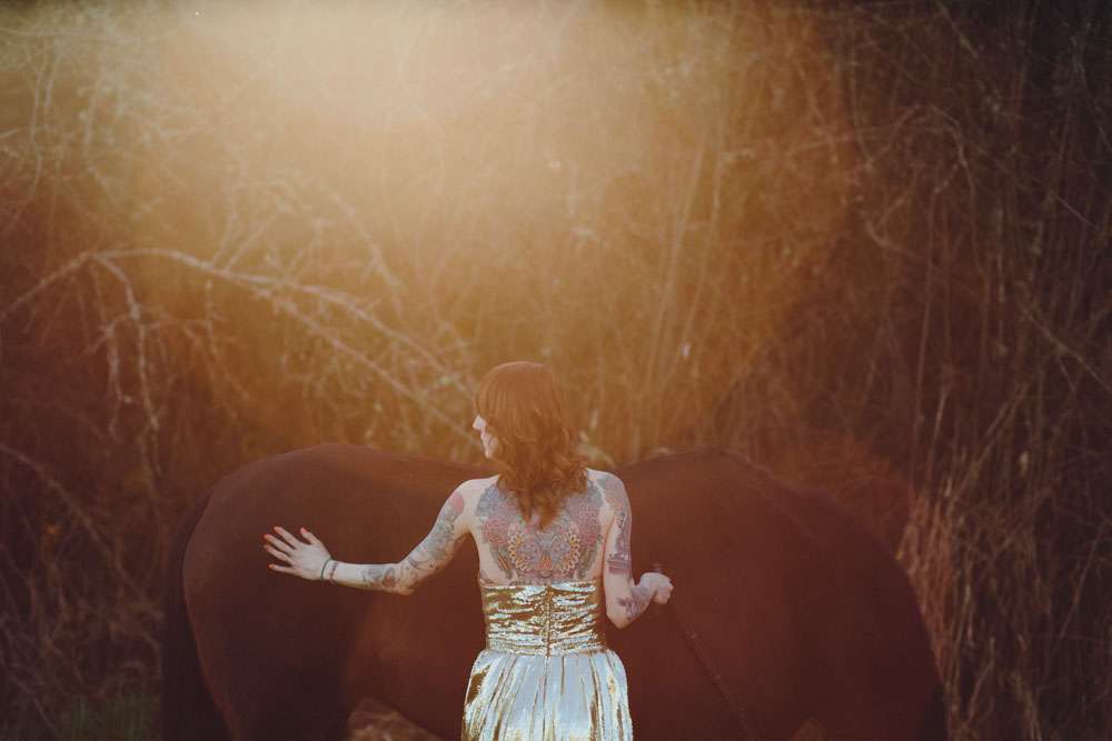 With a bride who’s obsessed enough with horses to get three of them tattooed as a chest piece, photographer Catalina Jean knew what the starting point for her next styled bridal shoot had to be. “Ginny and Jack are having an indoor wedding this next winter so I brought up the idea of doing a bridal session at a fun outdoor location on a day with nice weather”, she explained.