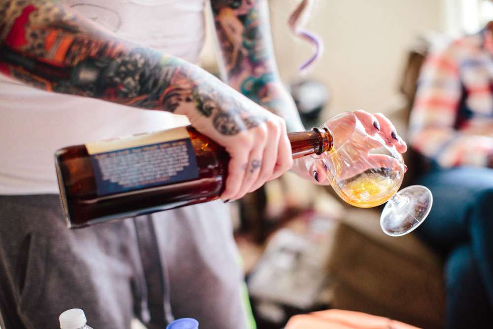 Mandy and Chris wanted their New Jersey wedding to be a reflection of the things they love, and so lace and home-brewed beer it was! The ceremony was held at a chapel in Allaire Park, officiated by their tattoo artist friend, the reception was at The Mill in Spring Lake.
