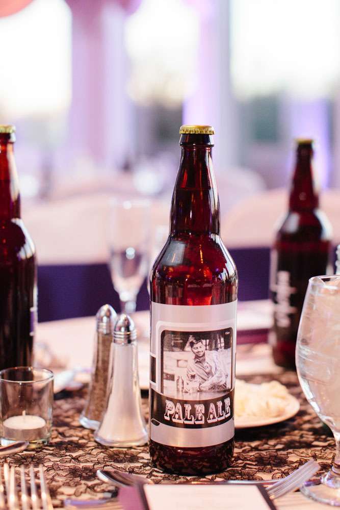 “Our favors were 22 oz bombers of a variety of 3 beers Chris brewed himself over the past year”. she continued. “They included a Scottish, Amber and Pale ale. We had labels made that had our engagement photos on them. They were a hit. He really enjoys brewing beer and even has since then started farming his own hops!”
