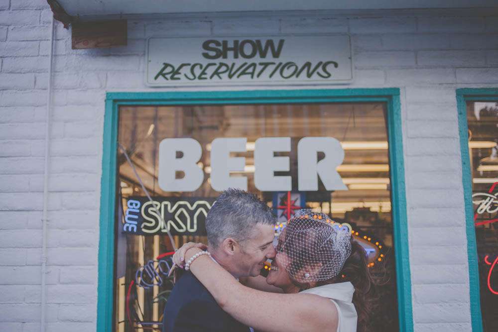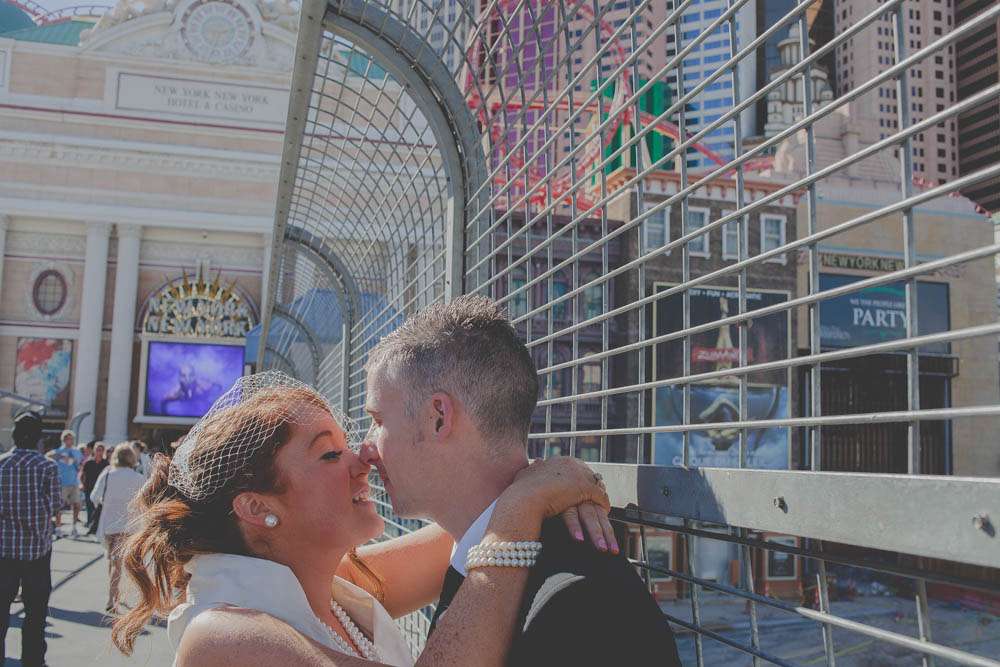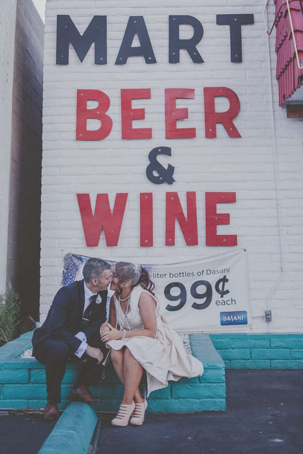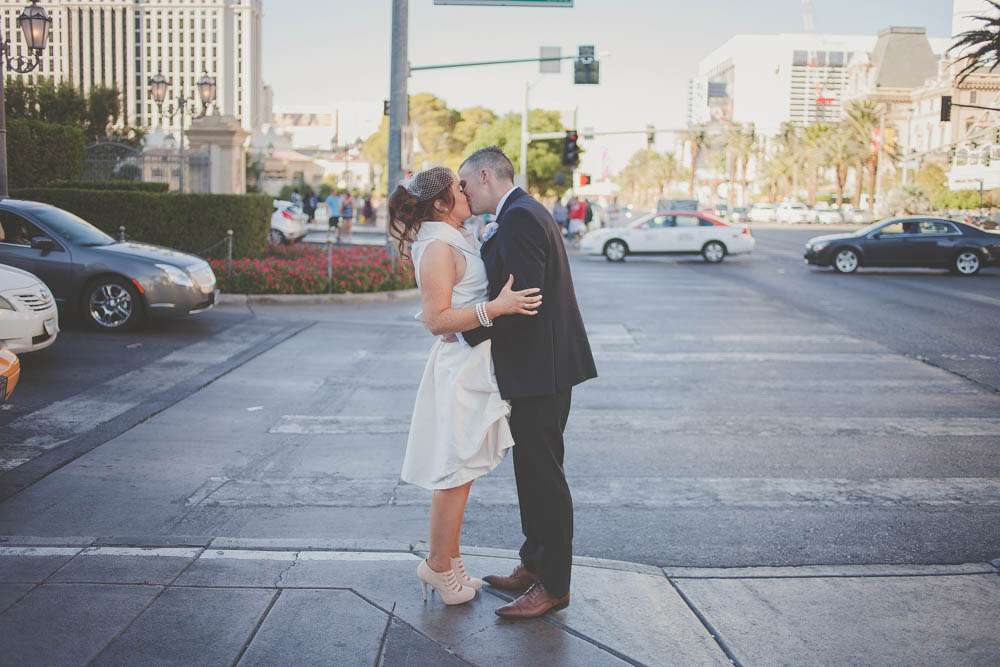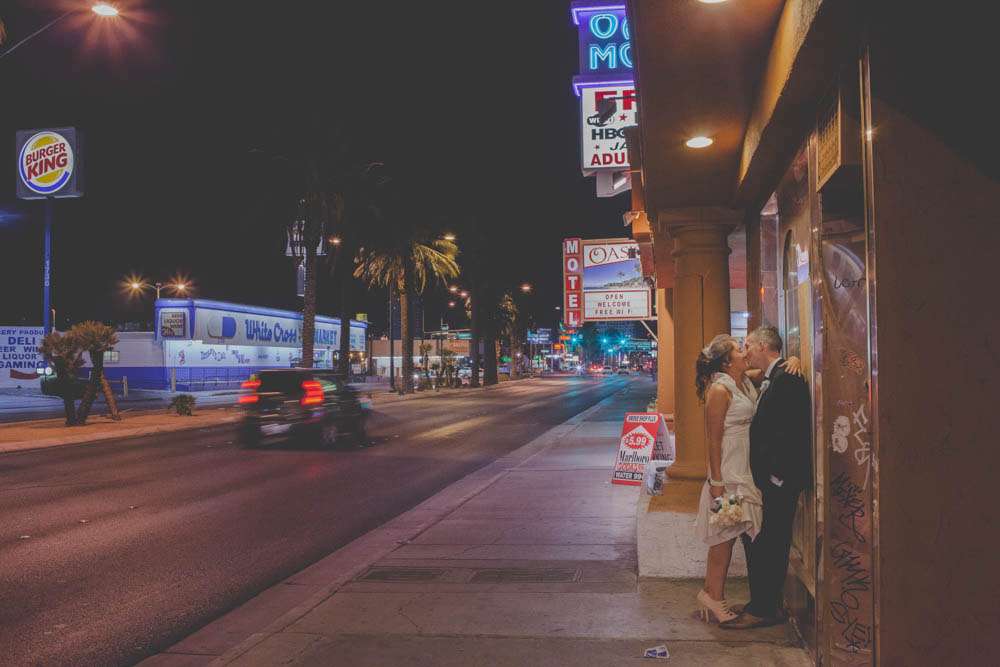 Being a wedding photographer herself, there was one big thing at the top of Kerry‘s wedding must-have list – a great photographer of course! They picked Sally T for the job and they all flew out from the UK together. They ceremony was held at the Chapel of the Flowers and was officiated by – who else – Elvis! They didn’t have a formal reception but just partied out and around Freemont Street.