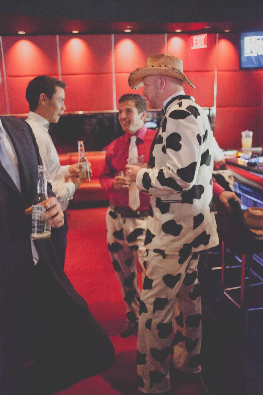 “The groomsmen in the cow print suits have definitely been a talking point”, she continued when I asked if there was any significant moments from the day. “We weren’t too fussed about the groomsmen having matching suits so I just asked them to wear a suit they already owned.. little did I know that they all already owned 3-piece cow print suits!!”
