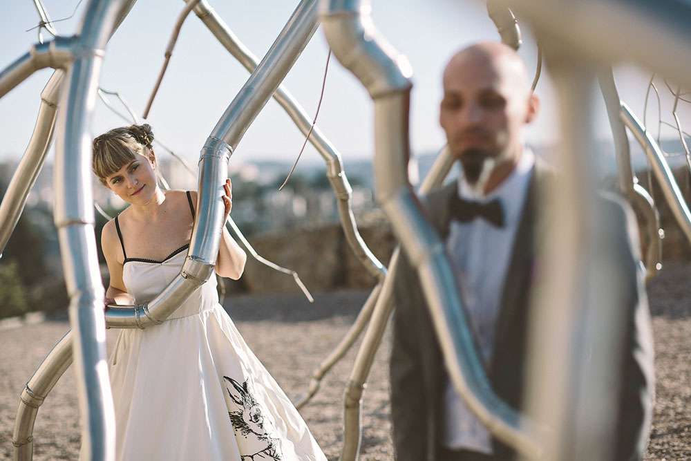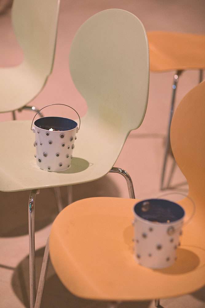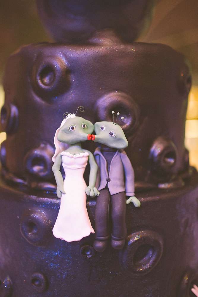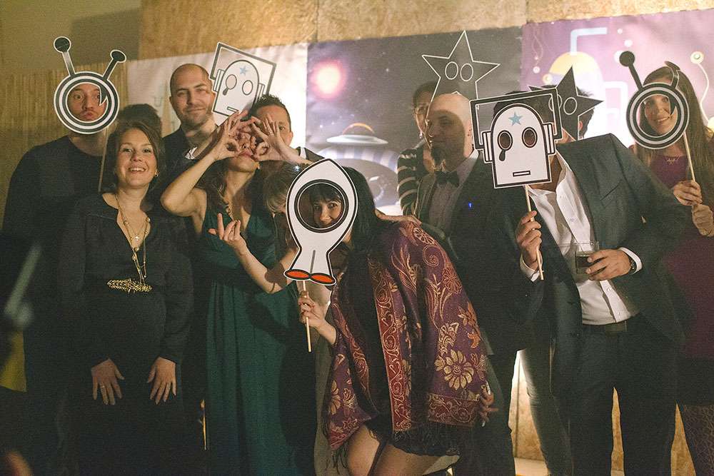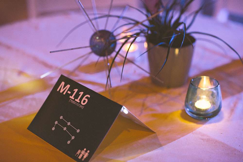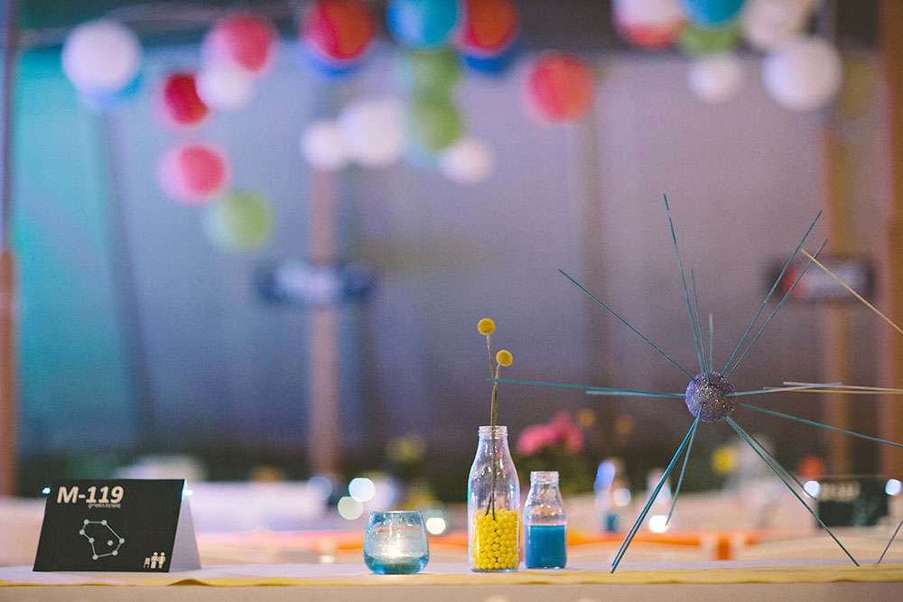 “We love sci-fi, and so we decided to follow that in all the design aspects, and introduce to our guests that world”, wrote the bride. “We did all the design ourselves. For favours we gave each guest a small LED light connected to a small battery, the idea was that each guest is a star in our galaxy. We loved that everyone seemed to find a unique and creative way to hook it to themselves!”