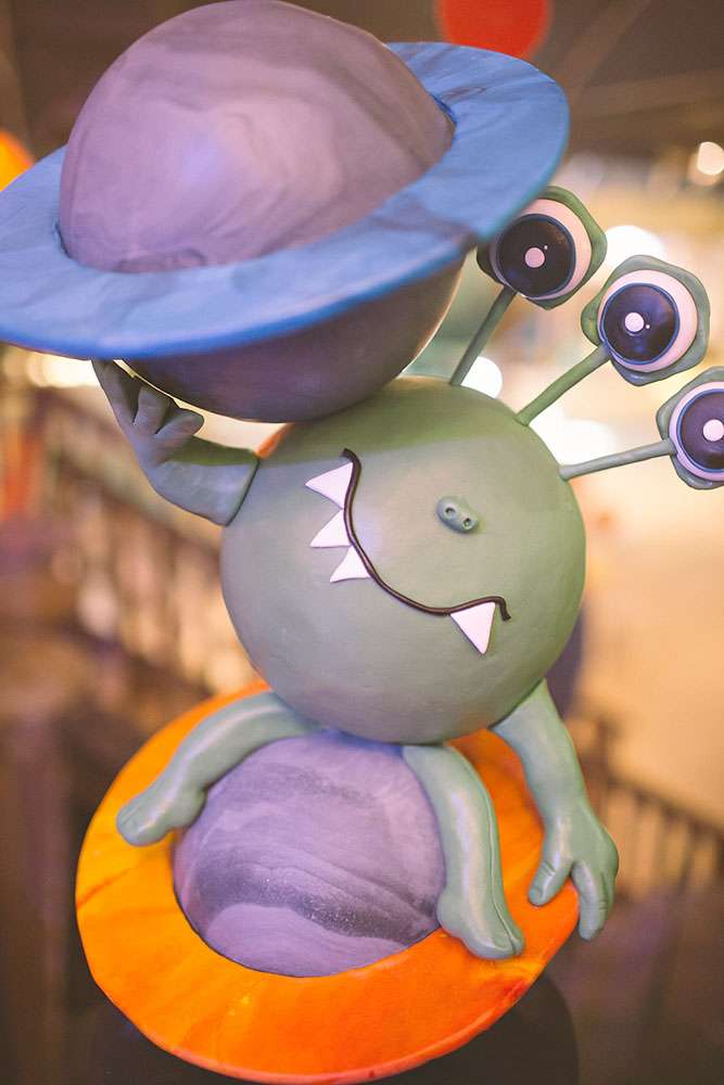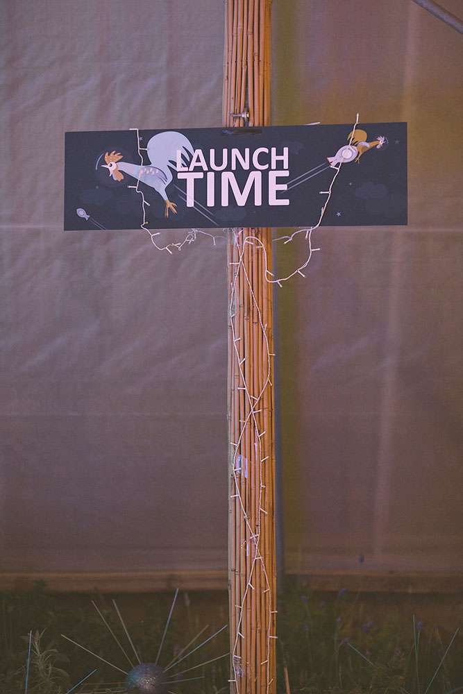 “Instead of flower girls we had ‘star girls’. We created a bucket creature alien for them to each carry, with lots of eyes! We filled the buckets with small star shaped paper which we’d cut out ourselves using a star shaped cutter. We also made a photo booth with space themed masks. It was lots of fun!”