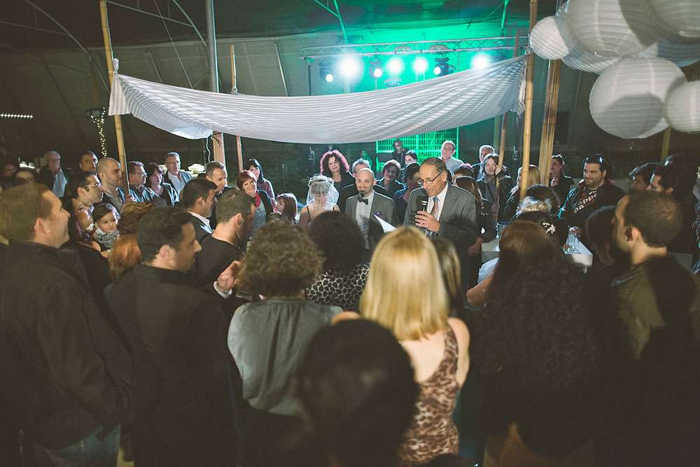Both being massive sci-fi geeks, a space theme was quickly decided on for Galit and Liron’s February wedding. The Jewish wedding took place in a huge greenhouse in Israel, and they DIYed nearly everything themselves.