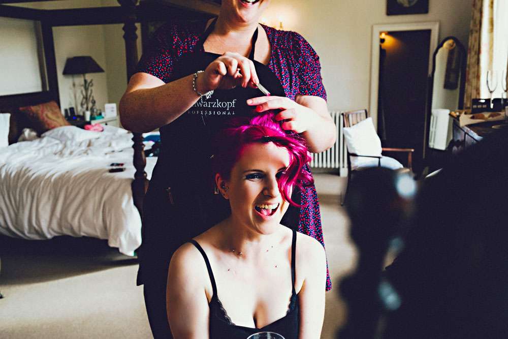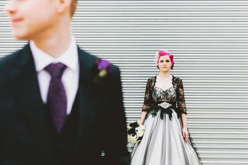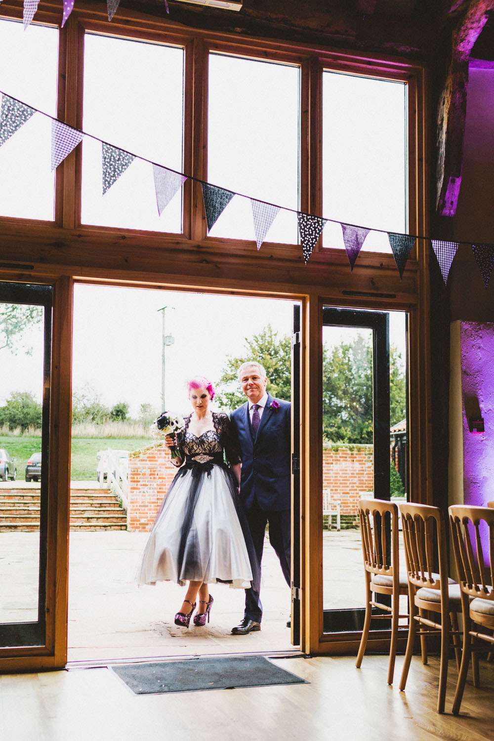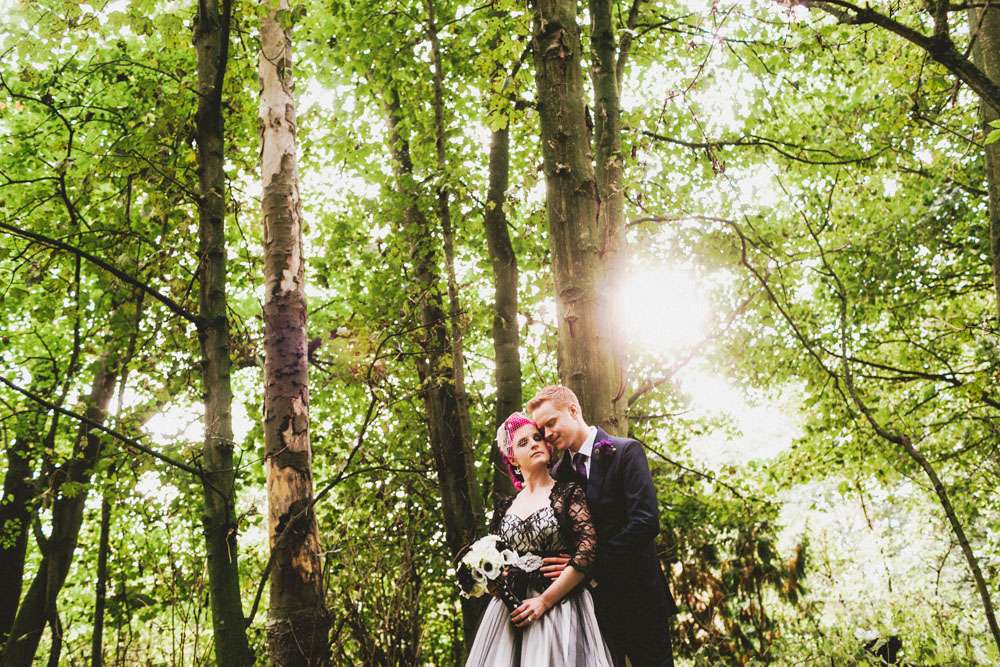 Wearing a bespoke black wedding dress, Iron Fist shoes and rocking her fuchsia tresses with aplomb, Jude married Will at Bruisyard Hall in October. They booked their country house venue for whole weekend and threw the party in the middle! The celebration was centred around the couple and their love of alternative music. They wanted the feel of a rock gig for their wedding and for all their guests to have a blast.