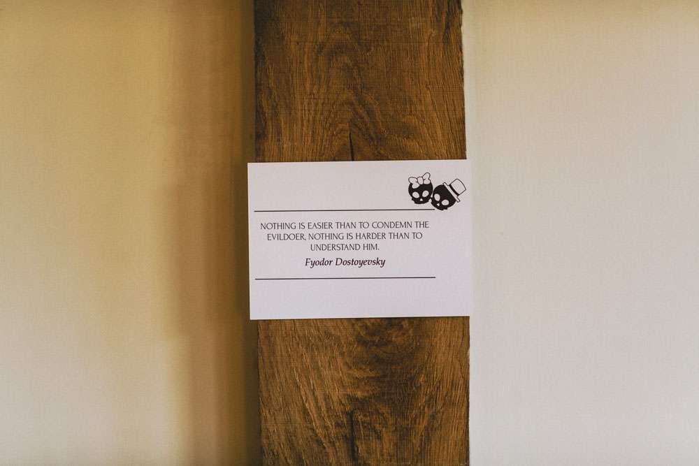 “We actively tried to steer away from ‘the norm’ in a lot of ways, such as with the readings in the ceremony (we included song lyrics as a reading and also the closing lines from the film ‘The Breakfast Club’ as they meant something to us and seemed to fit well). We had skulls all over the place because I love skulls and it wouldn’t have been ‘me’ if we hadn’t put them in!”