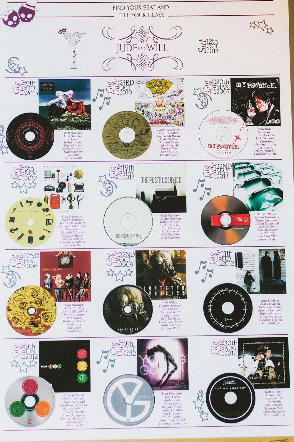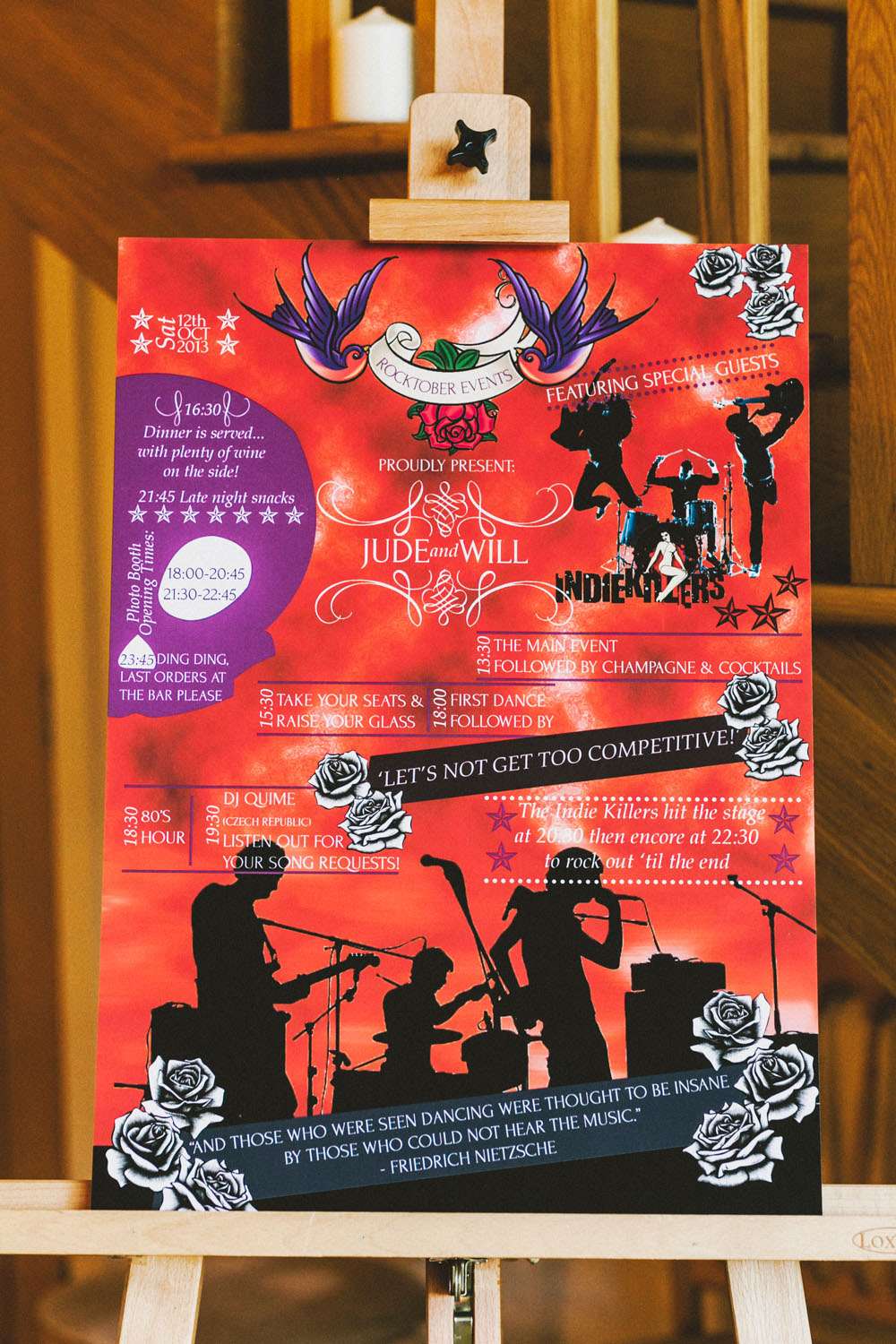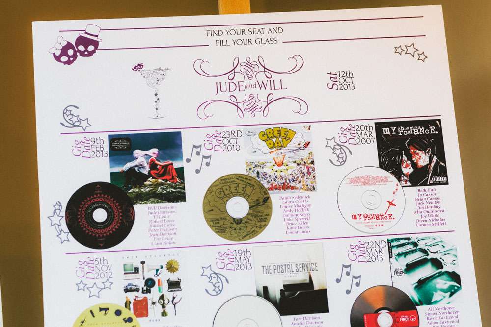 “We love going to gigs so getting an amazing band was a huge priority to give us the rock gig feel we wanted for the evening”, explained the bride. “Our tables were named after bands we’ve seen live together and each guest had different song lyrics from their table’s band inside their name place card. And we absolutely had to have cocktails after the ceremony as we’re huge cocktail enthusiasts!”