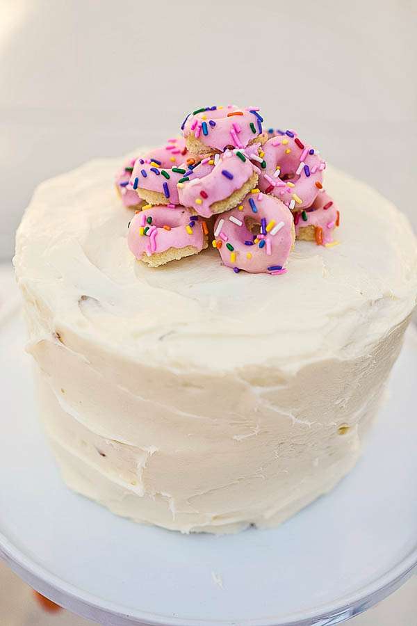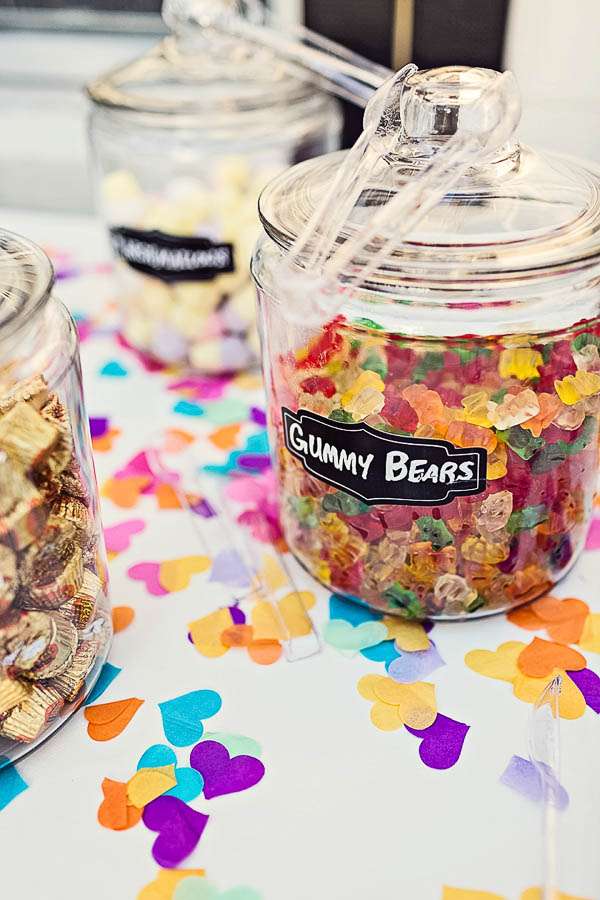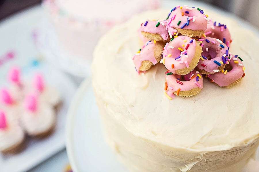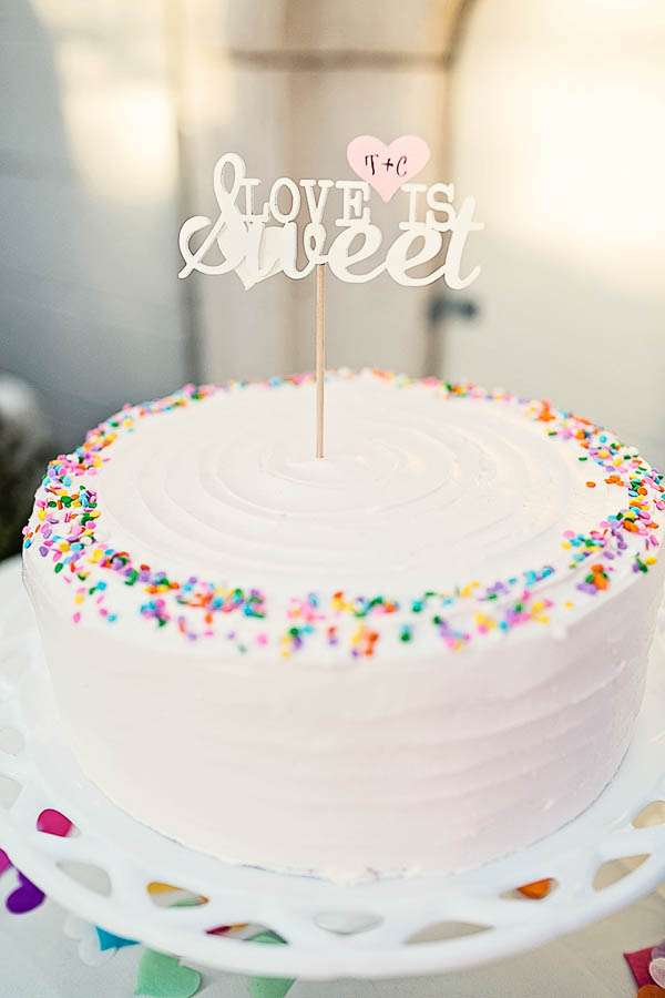 “Pastel candy rainbow is the easiest description for the reception”, explained the bride. “We went for a more nature inspired, minimal, springtime themed look for the actual ceremony. We’re both foodies (Chris being a chef helps) and we love donuts, candy, sprinkles, and lots of colors.”