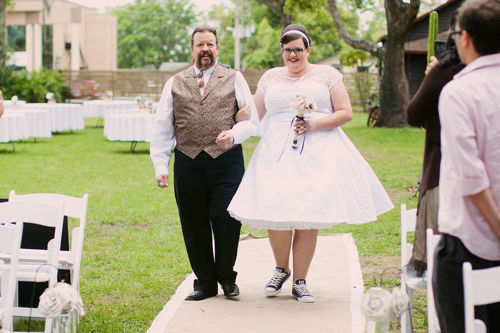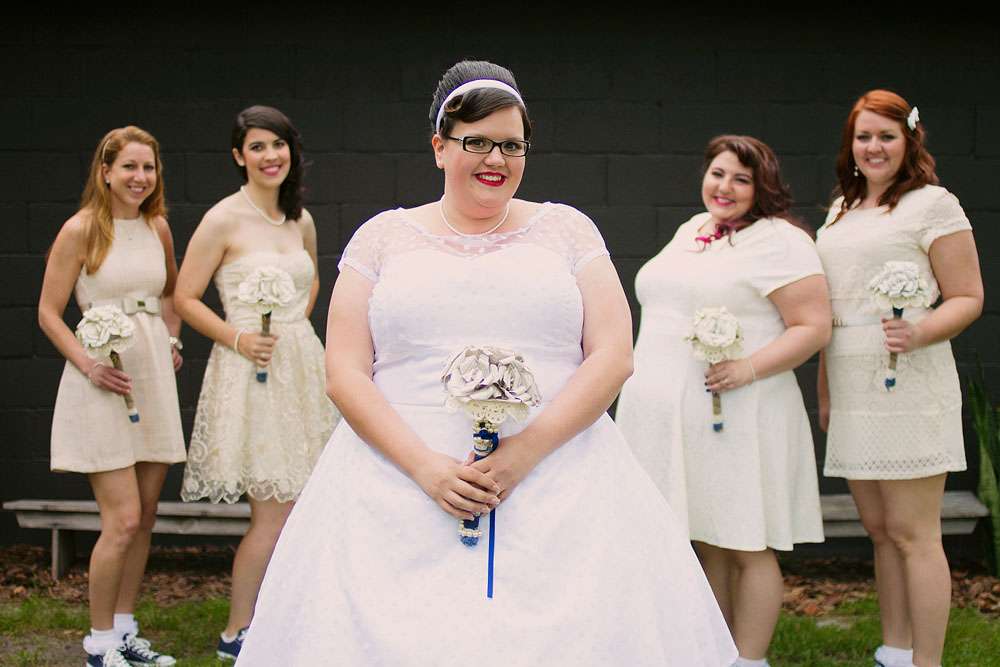 Tom and Emma were married in Florida. Their wedding was nerdy, with a touch of vintage, just like them! They had loads of lovely handmade and especially sourced details such as paper flower bouquets and Ski Soda brought in from Illinois.