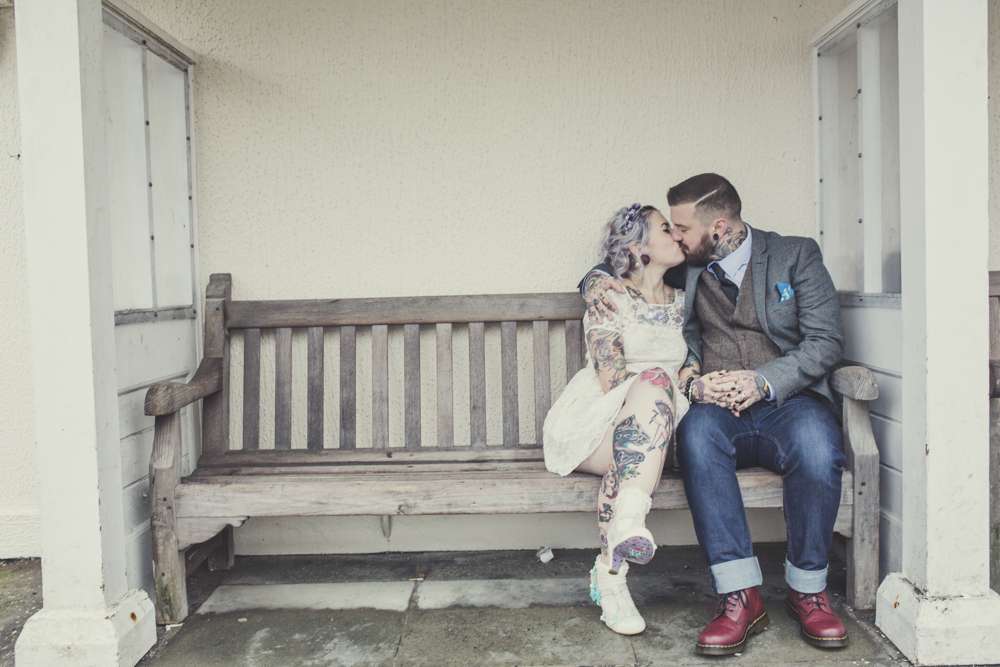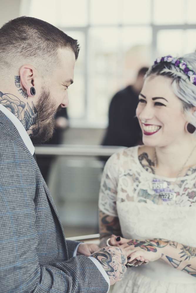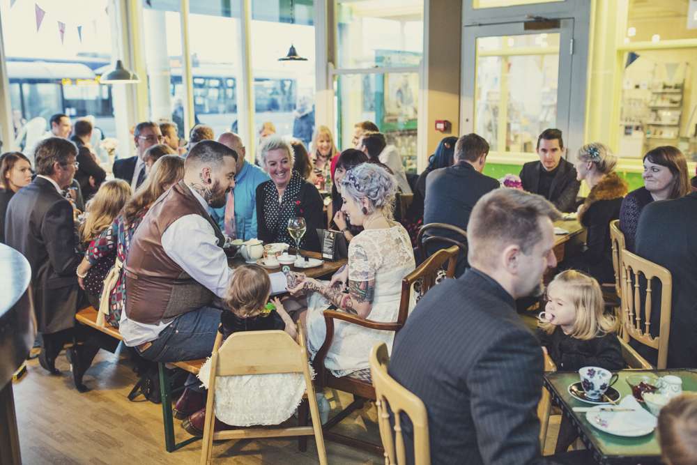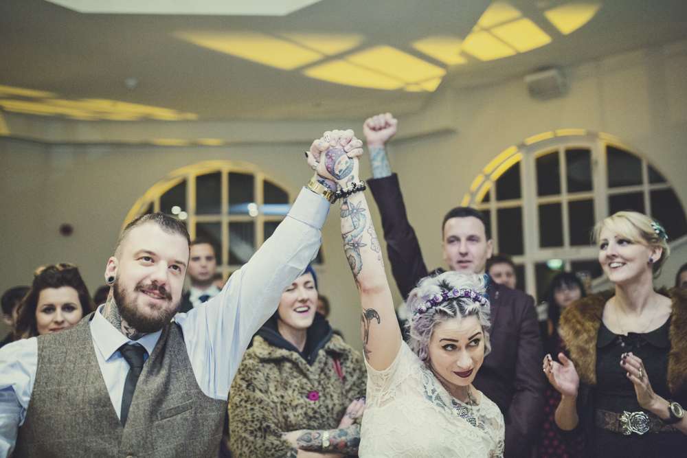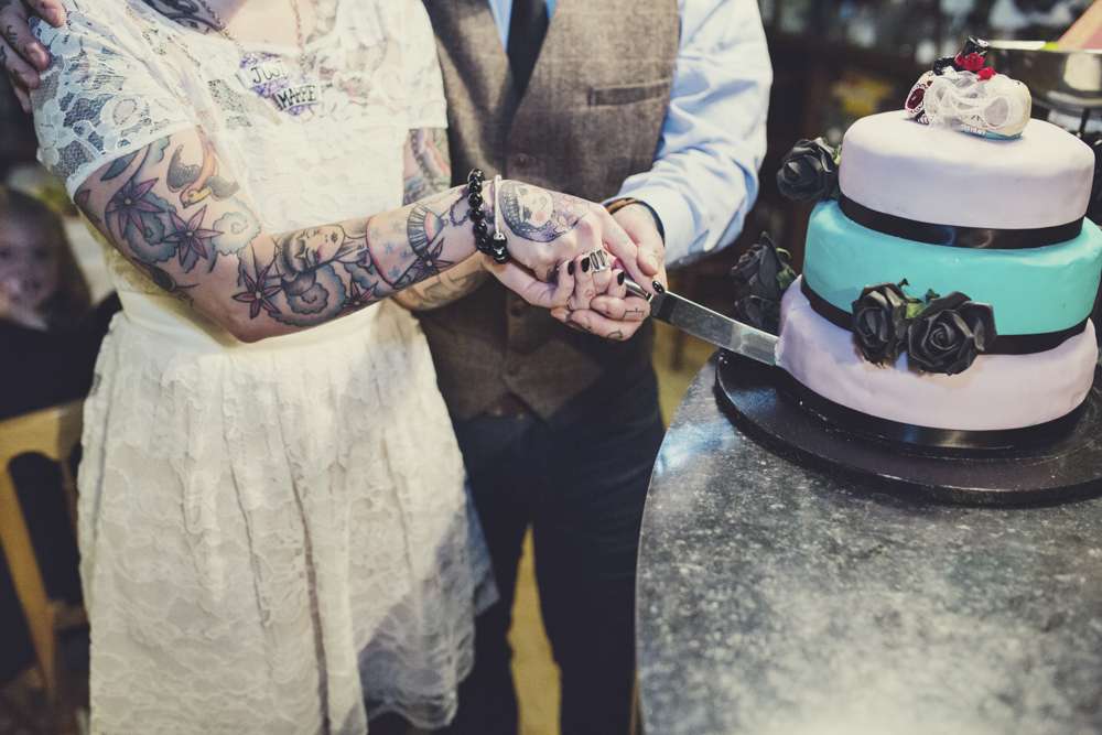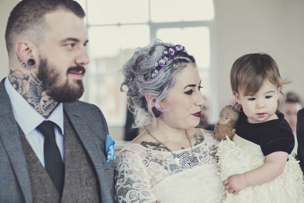 “We didn’t really have a theme as such but we chose Halloween as our day and the venue did everything for us with the views and the tea rooms”, she continued. “We didn’t set out to have an ‘alternative wedding’, it was just the norm for us. We are set in our ways with our lifestyle to the point we don’t think about it. We own a tattoo shop and my husband has been in bands most of his life. I guess we gravitate to what’s unusual in other peoples eyes. The day was purely just us to a T right down to our daughter’s Dr Marten boots under her frilly dress and the date we chose.”