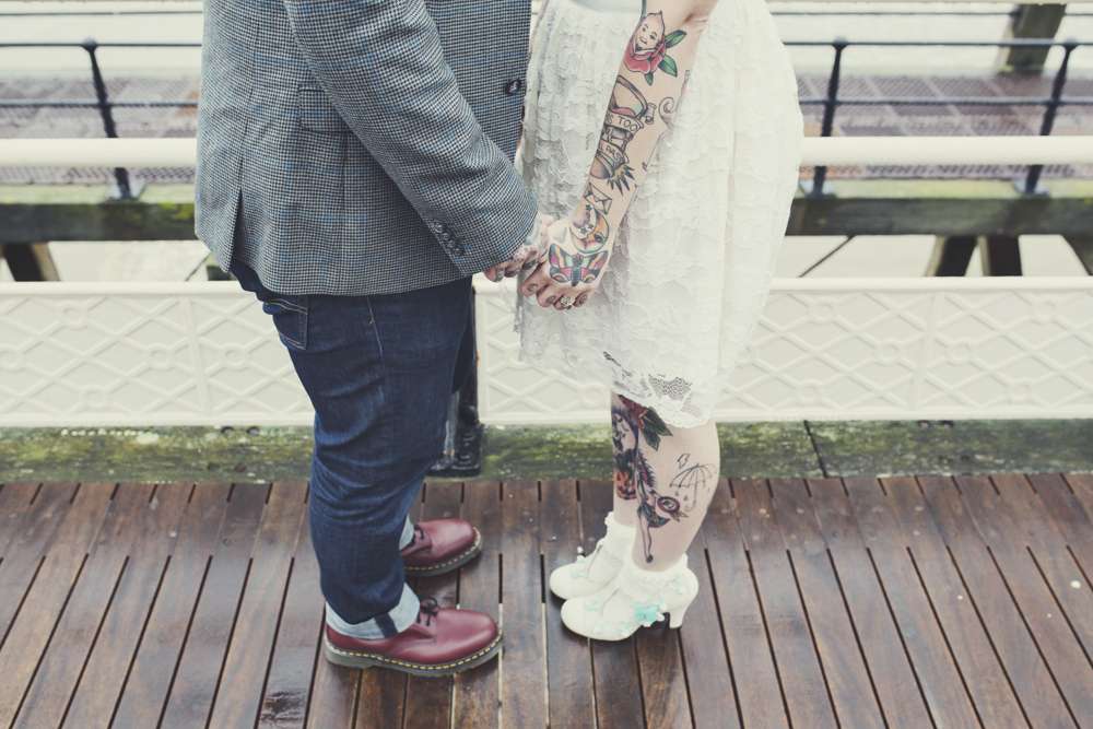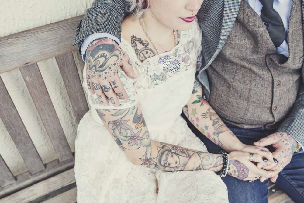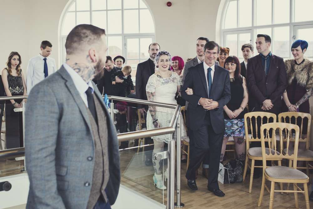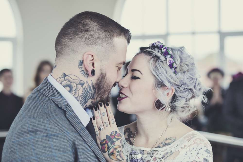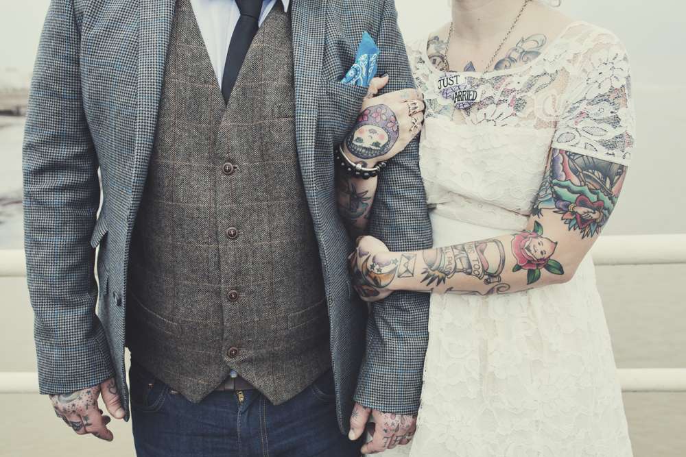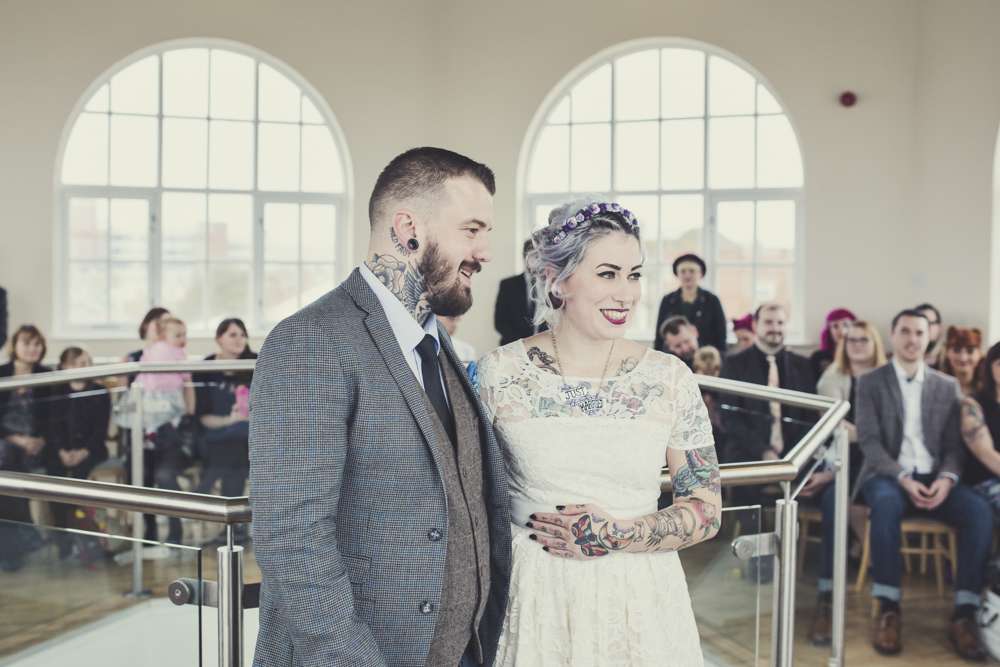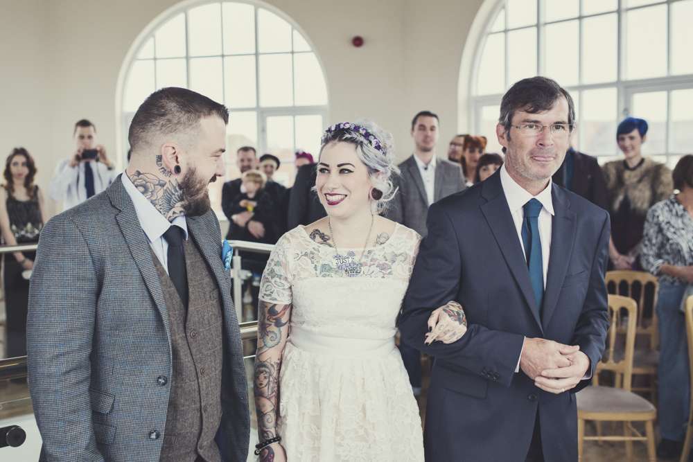 “We didn’t really have a theme as such but we chose Halloween as our day and the venue did everything for us with the views and the tea rooms”, she continued. “We didn’t set out to have an ‘alternative wedding’, it was just the norm for us. We are set in our ways with our lifestyle to the point we don’t think about it. We own a tattoo shop and my husband has been in bands most of his life. I guess we gravitate to what’s unusual in other peoples eyes. The day was purely just us to a T right down to our daughter’s Dr Marten boots under her frilly dress and the date we chose.”