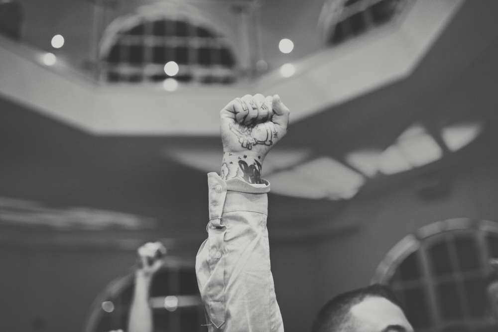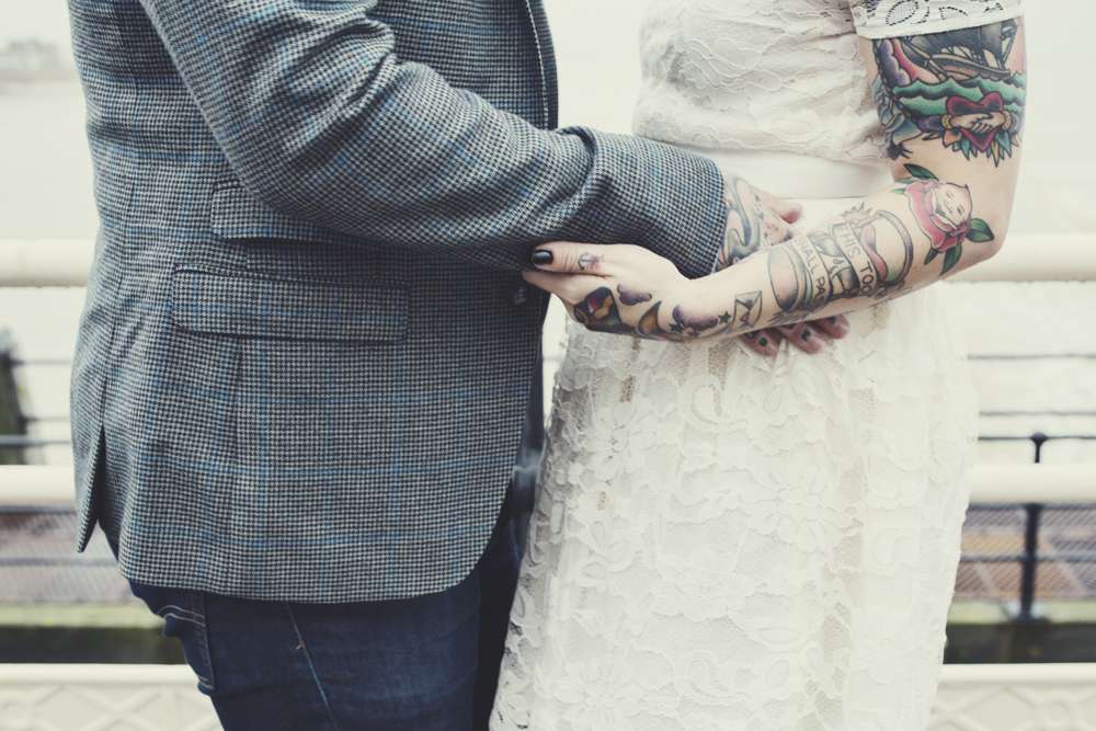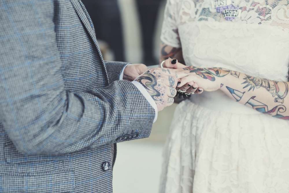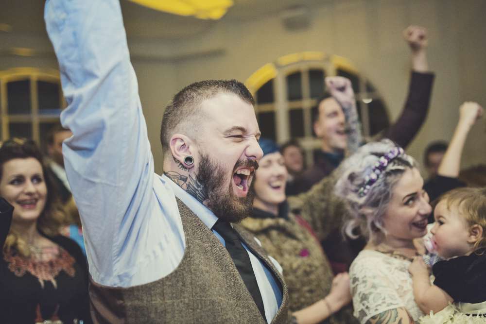 “One of my favourite moments was during the speeches. My husband is straight edge and we played down the alcohol part of the wedding, a risk I know but we are lucky in friends who respected our wishes. Instead of raising a glass one friend raised a fist, then everyone did. It was an awesome totally effortless punk rock moment that has stuck with me.”