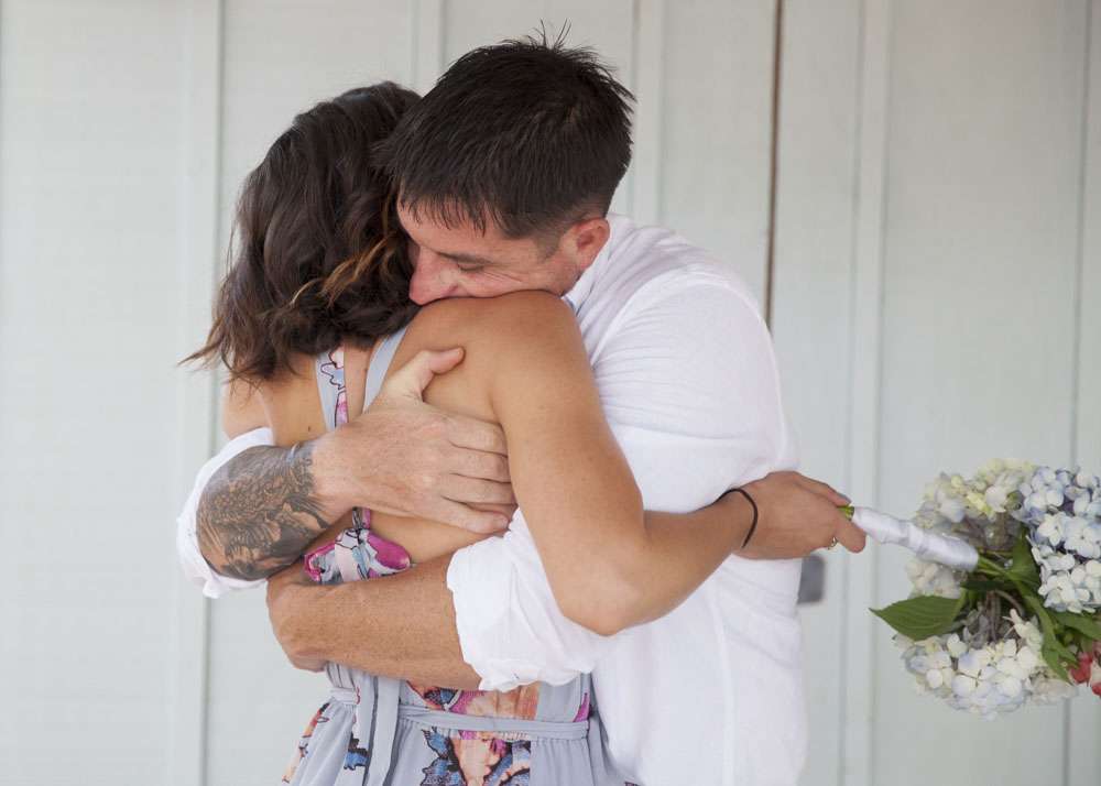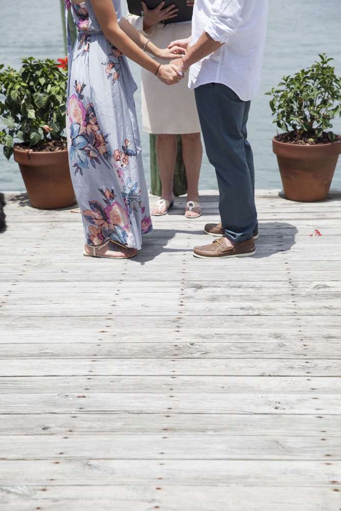“Our only big expense was our clothes and my dress was on sale! We saved money on everything else! It really is all about who you know. I didn’t think we would have had a cake or anything because I wanted this to be a low maintenance as humanly possible but my friends wouldn’t allow that! Our dear friends own the town bakery, my friend Sharon who hosted the event, made sure food was taken care of. I used to work at the best restaurant on the island whose bartender, Kate, attended. She mixed up the most delicious homemade Sangria, Bloody Marys, and mimosas. I wouldn’t say it was pot luck but I made a strict no gift policy. Everyone’s gift was their presence and they made my wedding fabulous.”