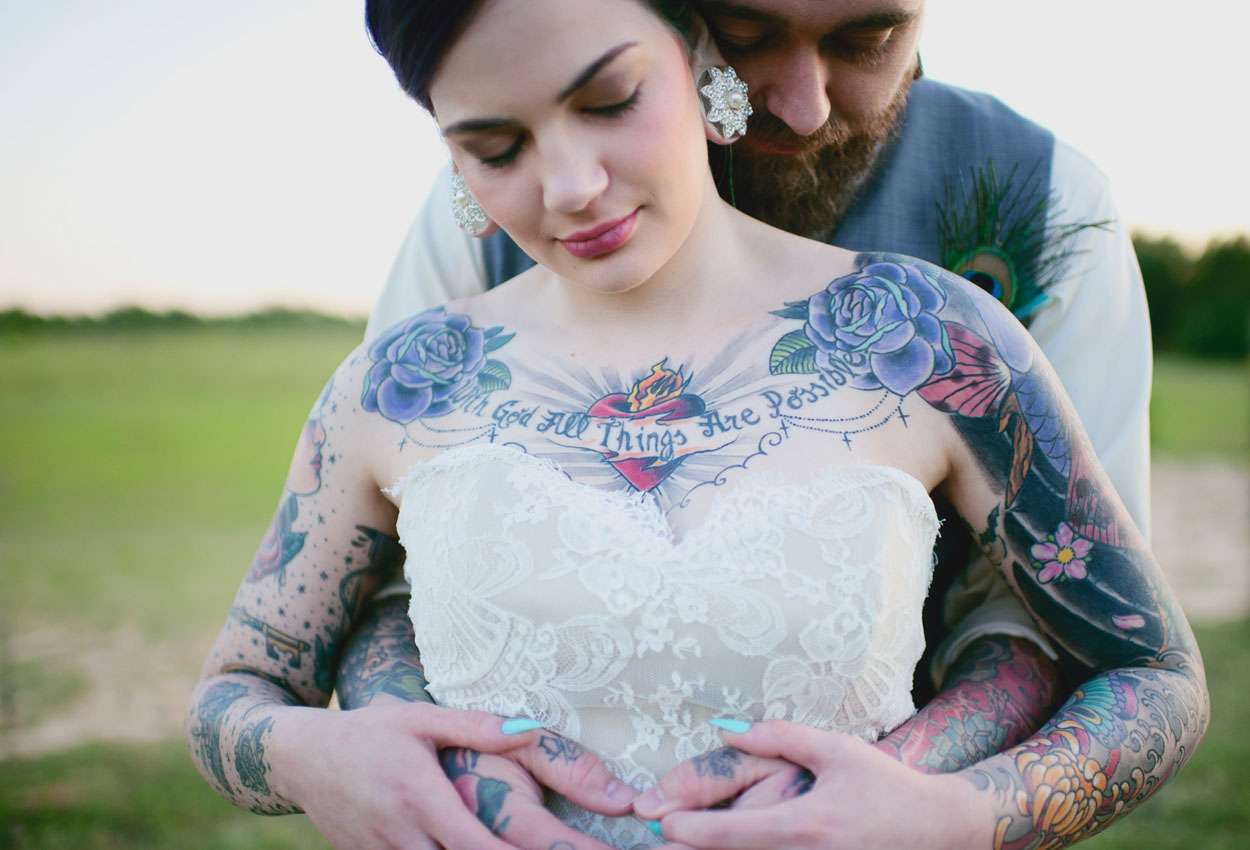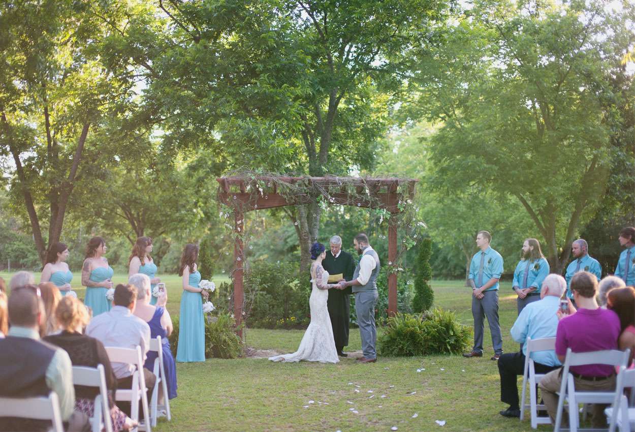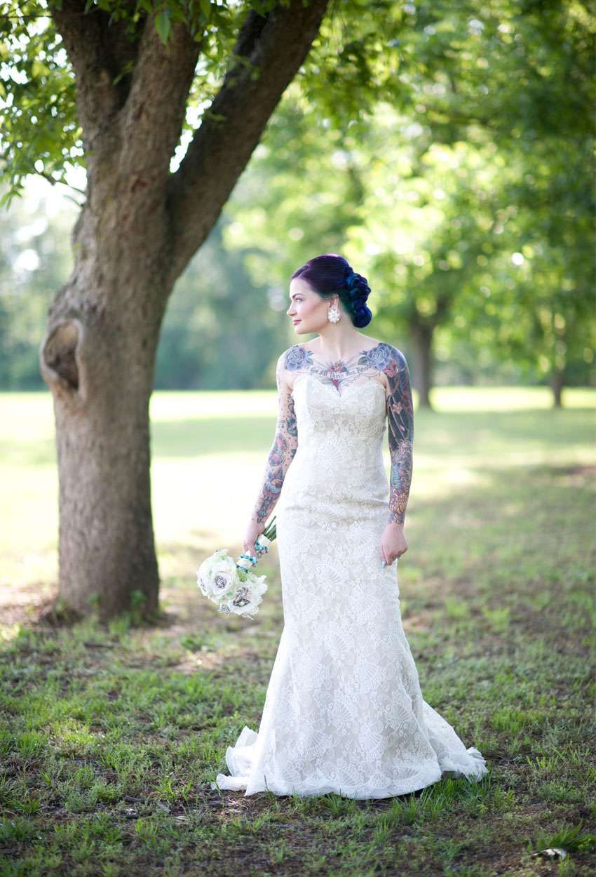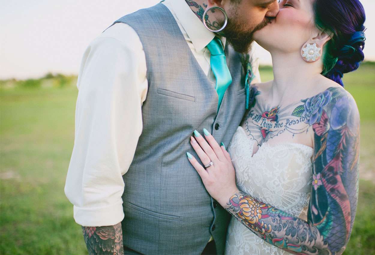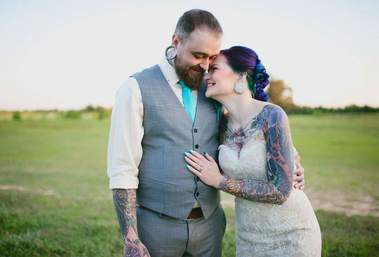 Jayne and Kyle met in the tattoo shop where Kyle works. They started dating a few months after that and they moved in together really quickly. For their May wedding at Perry’s Landing, an events space in Georgia, they wanted something low key and intimate.