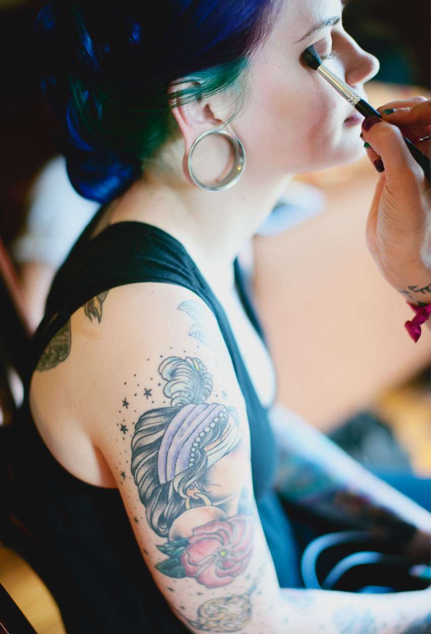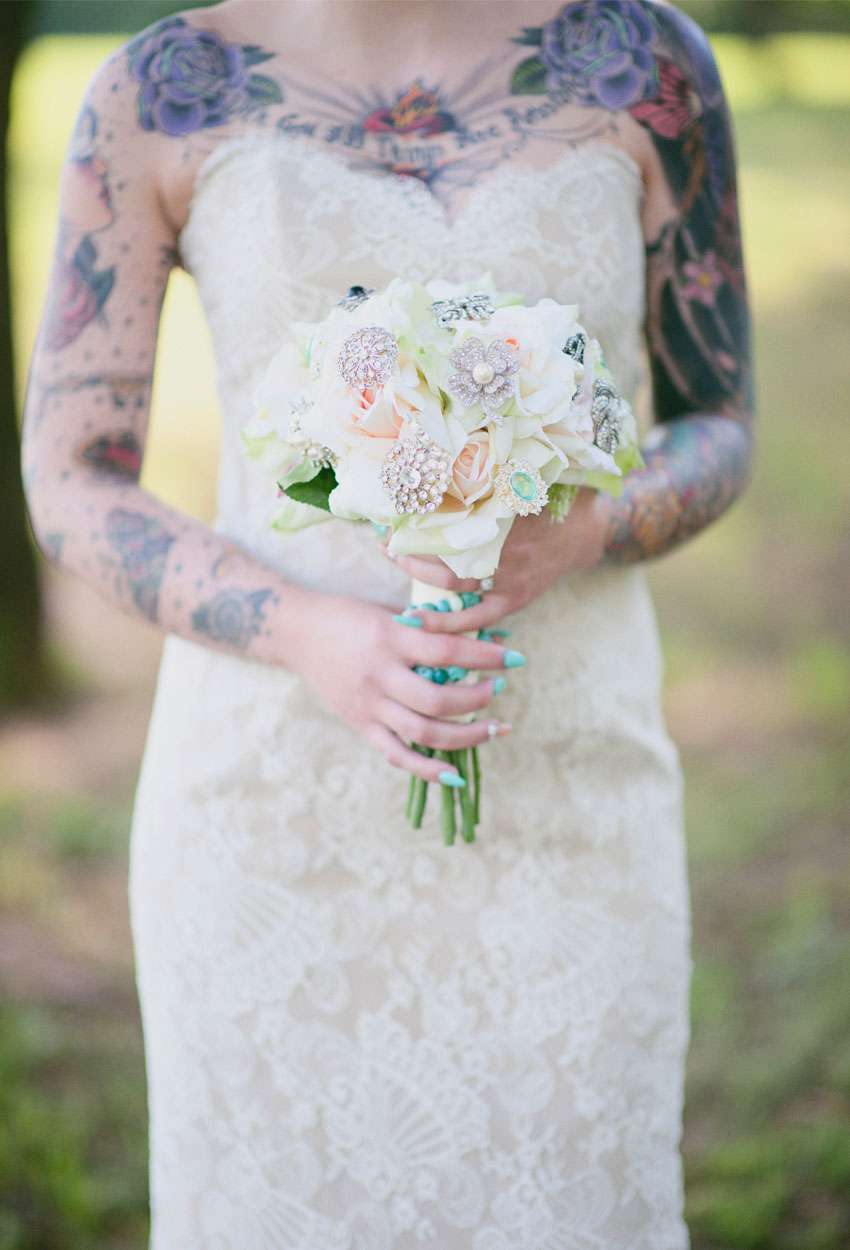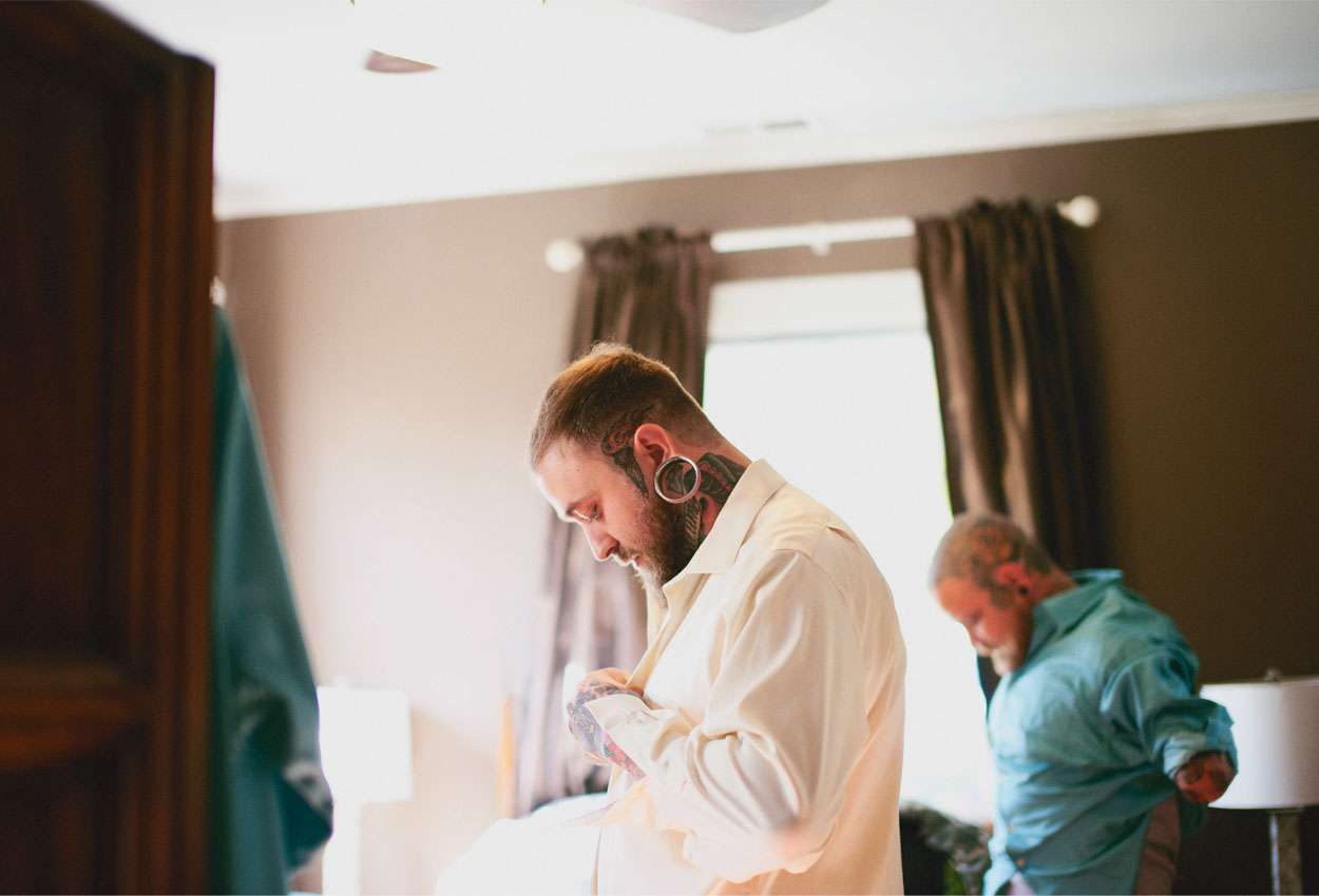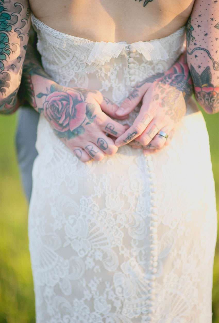 Jayne and Kyle met in the tattoo shop where Kyle works. They started dating a few months after that and they moved in together really quickly. For their May wedding at Perry’s Landing, an events space in Georgia, they wanted something low key and intimate.