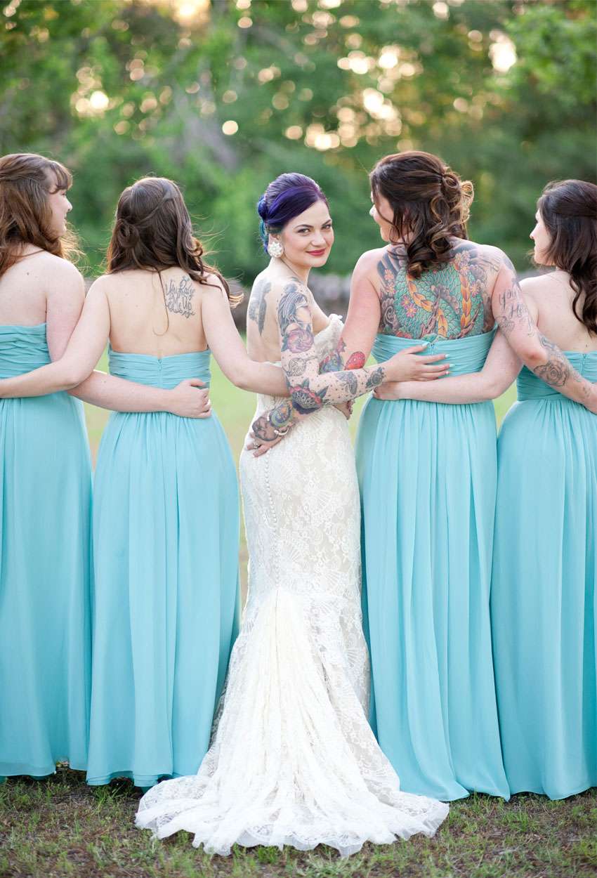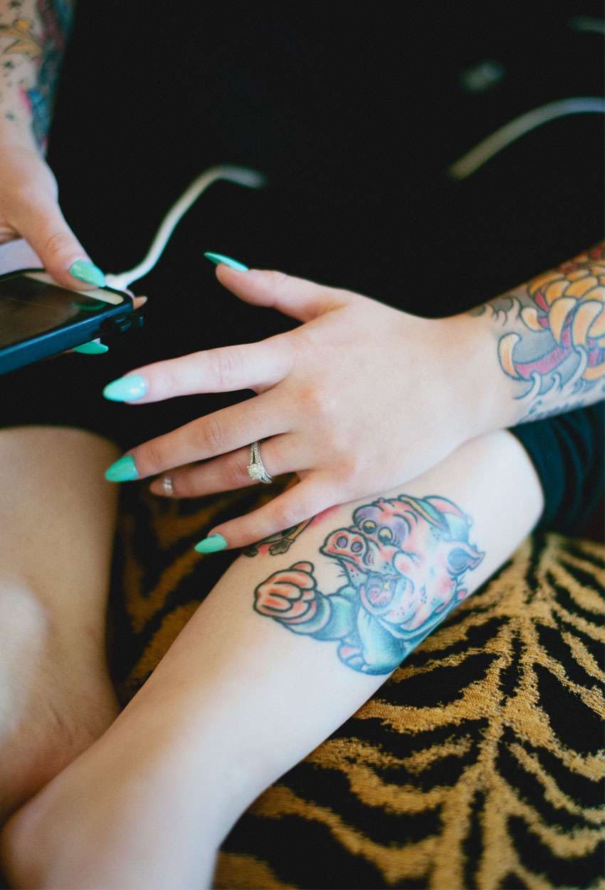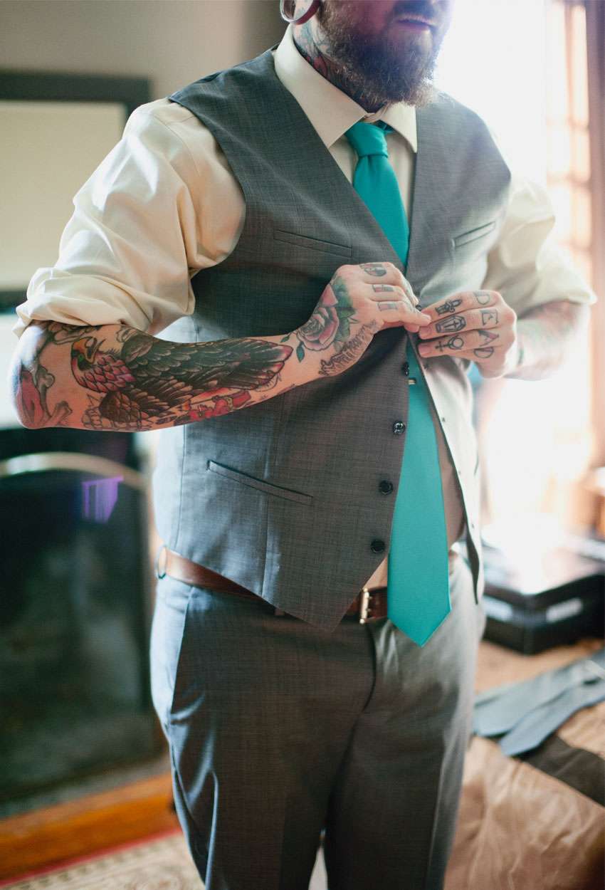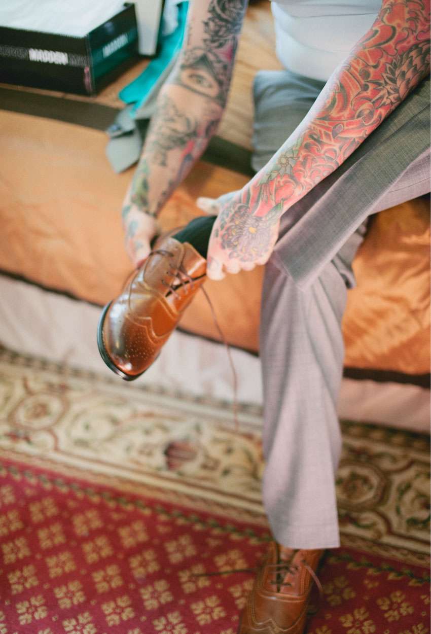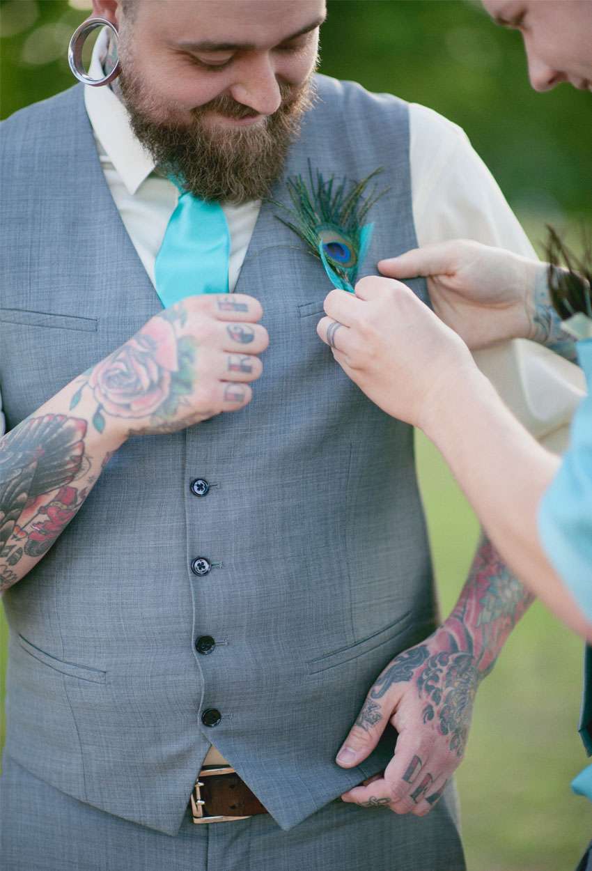 Jayne and Kyle met in the tattoo shop where Kyle works. They started dating a few months after that and they moved in together really quickly. For their May wedding at Perry’s Landing, an events space in Georgia, they wanted something low key and intimate.