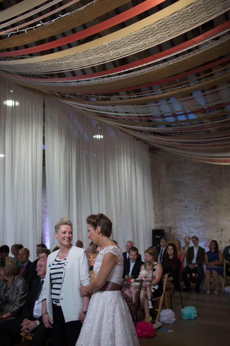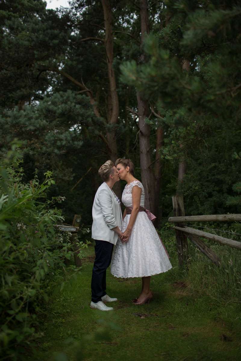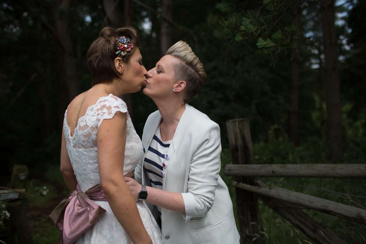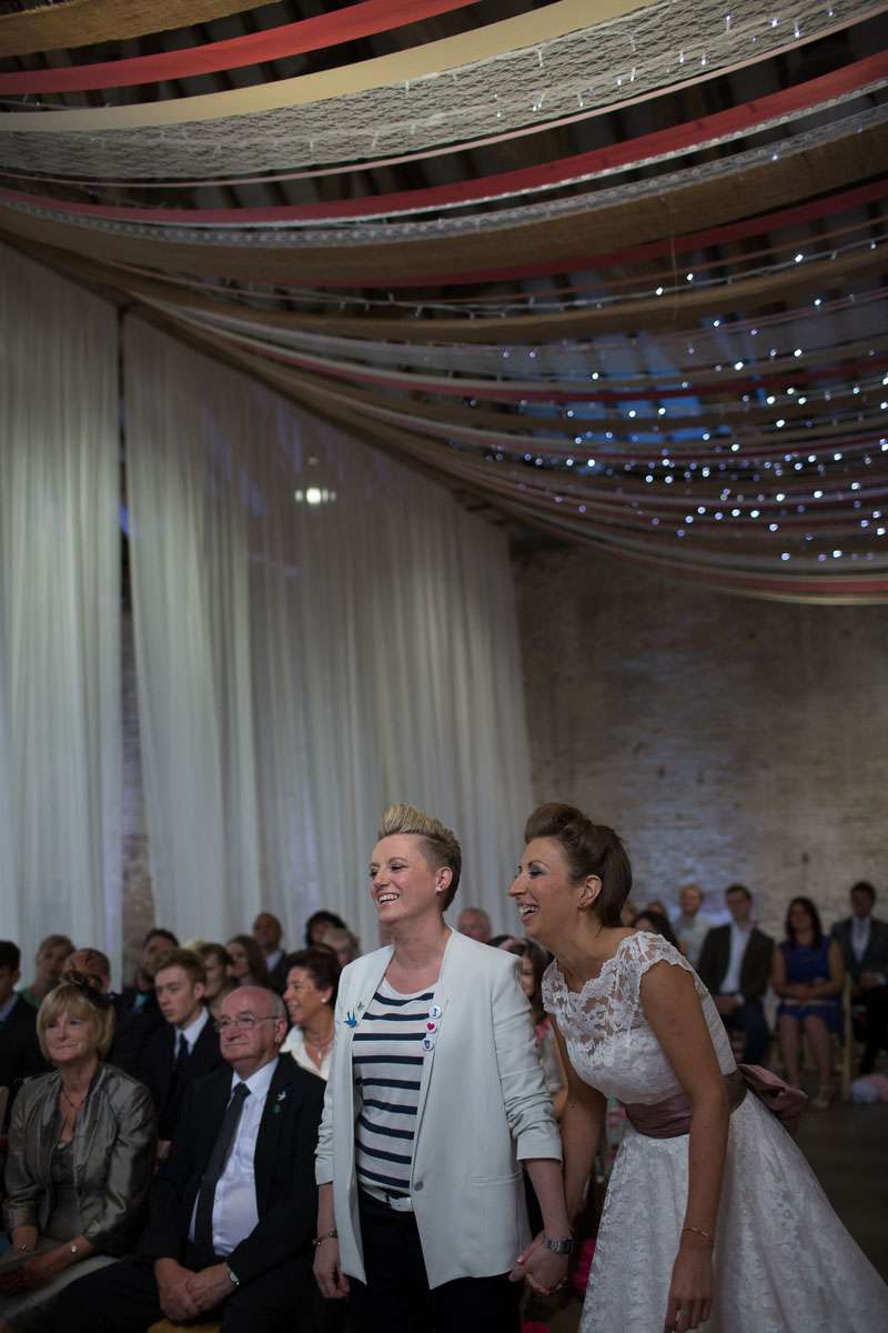 “Our wedding day was perfectly imperfect”, explained the brides. “We were adamant we did not want a prefabricated, immaculate wedding and opted for a laid back, rough round the edges kind of day. We chose the amazing venue, not for the grand unstately home (yes it’s really called that!), but for the rustic, flaking paint and quirky riding school, owned by the National Trust. We also made history by being the first same sex couple to have a ceremony there! We visited the venue on several occasions and it was transformed every time. We wanted a blank canvas where we could truly make our mark.”