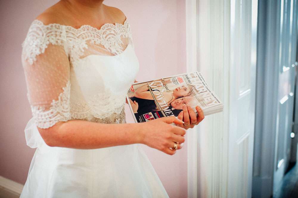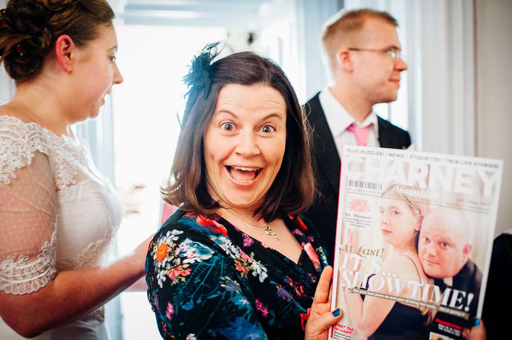 “Once we were outside the dance studio, our guests starting filing out but we were waiting for them on either side of the doors”, he continued. “Unbeknownst to almost everyone, I had secretly been working on a full 48 page wedding magazine since January. The magazine consisted of (amongst other things) a wedding timetable, family interviews and pictures, Ice breakers (a sentence about each of the guests – the funnier the better), a sarcastic guide to wedding etiquette, baby photos, puzzles, a letter from our cats, wedding traditions from around the world and false news stories and adverts based on our lifestyle (including an advert for Jagerbombs which said “Drink responsibly. Ish.” at the bottom).”