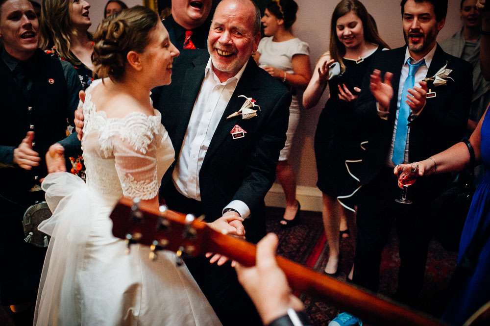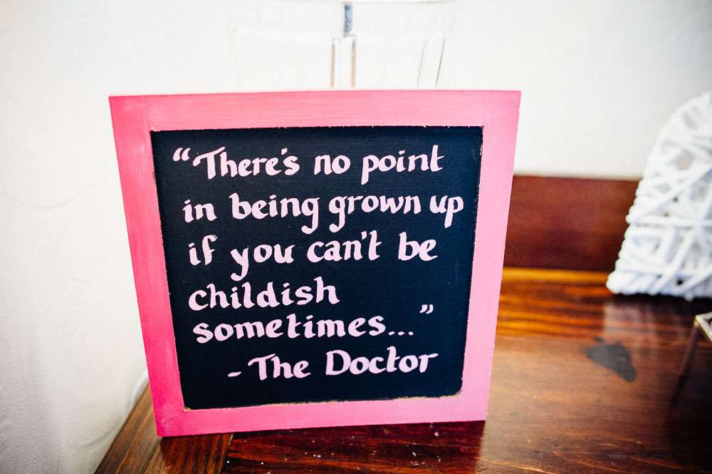 “More personal touches followed. Rather than a cake, we had a Croquembouche (Charlie enjoyed playing with the sword), my deep love of Doctor Who was represented by a special Eleventh Doctor cake later on, Charlie’s chief lady man of honour (retitled from the traditional ‘maid of honour’ after a discussion in the pub) pulled out an amazing speech, and the worst man (I had a best man and a worst man) persuaded our photographer Marianne to take a naked picture of him as a ‘surprise’ for when we went through the photos!”