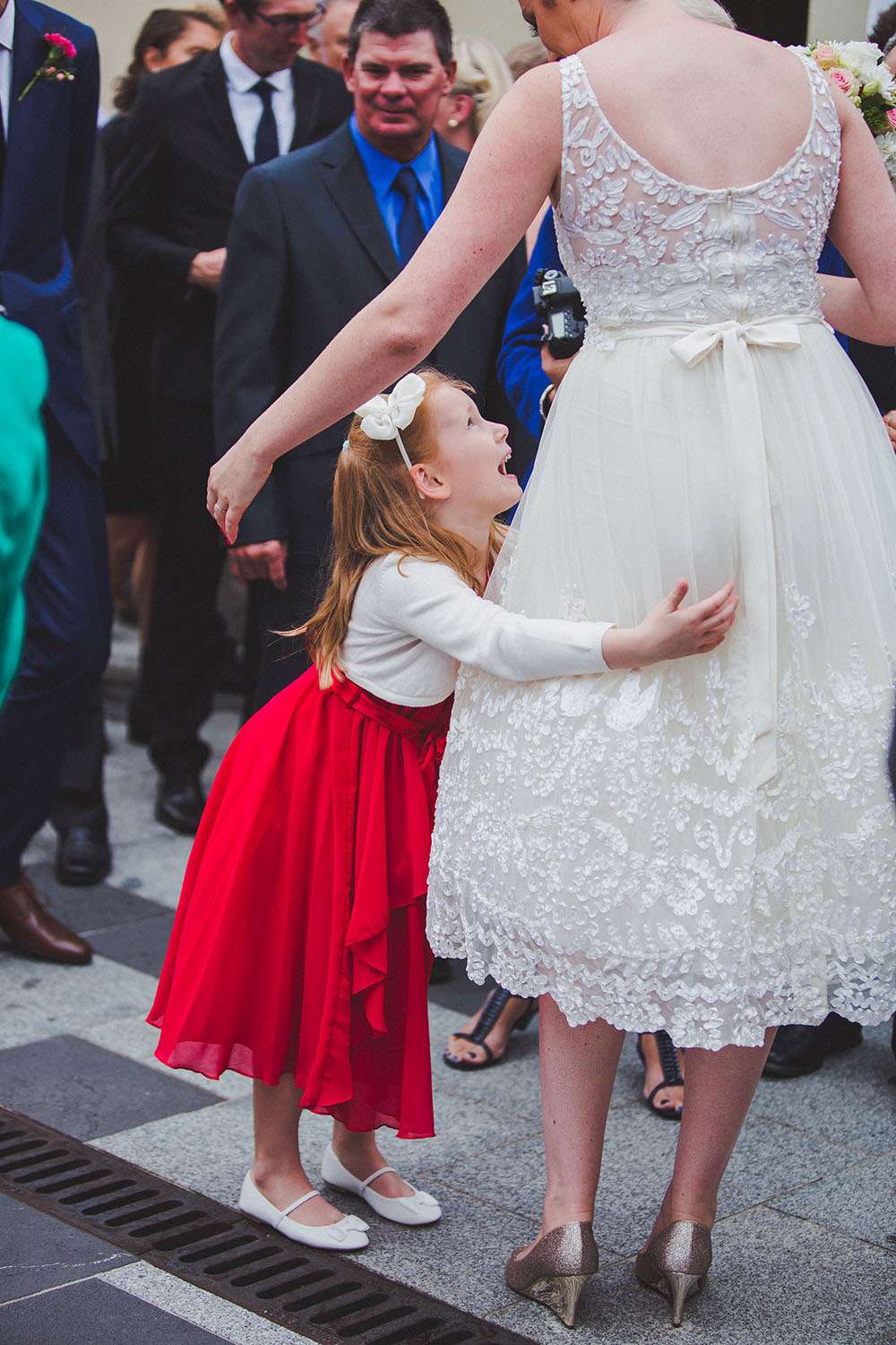 “We did a lot of things differently to the norm including the fact that my brother was one of my bridesmaids! I also wore a tea length dress and Steve and his groomsmen caught a tram to the ceremony. We had a kick ass taco stand instead of a traditional wedding breakfast too and we provided a babysitter so parents could enjoy themselves without worrying about their little ones.”
