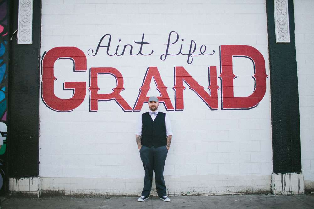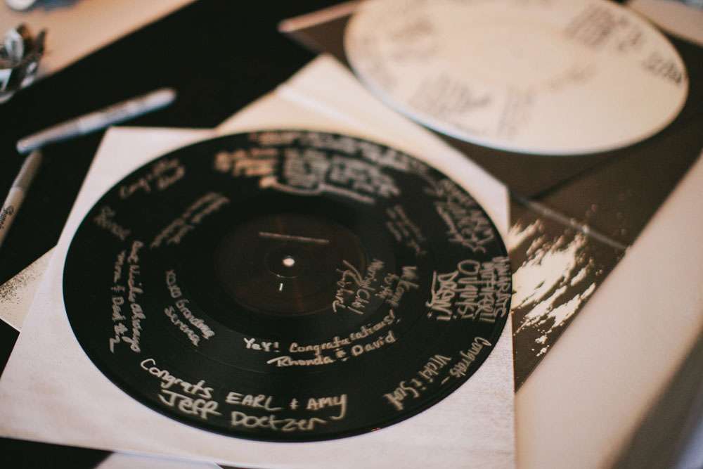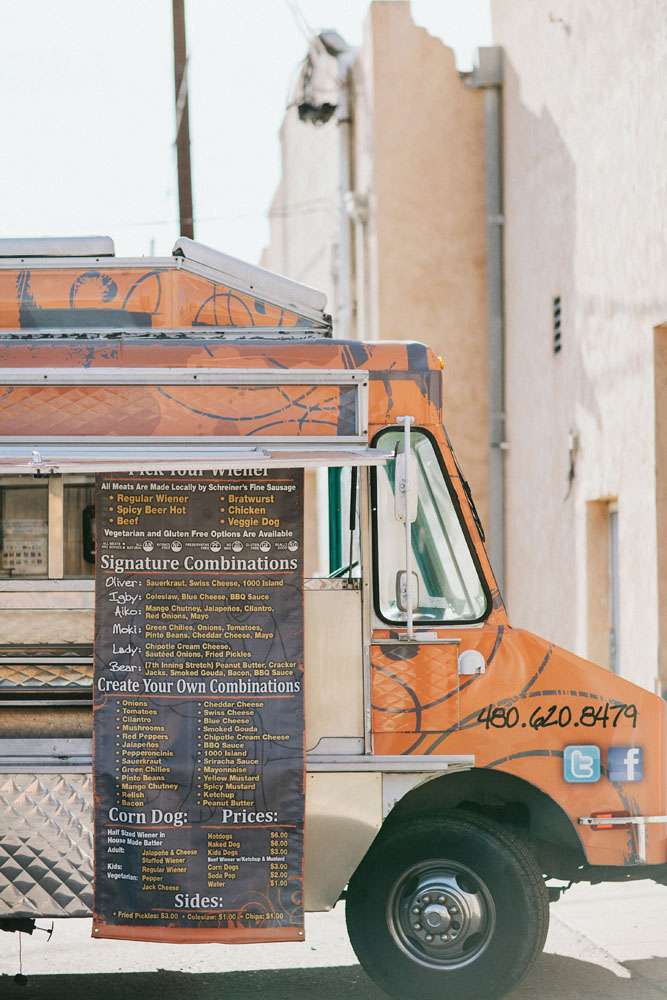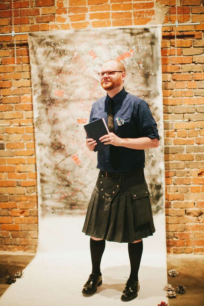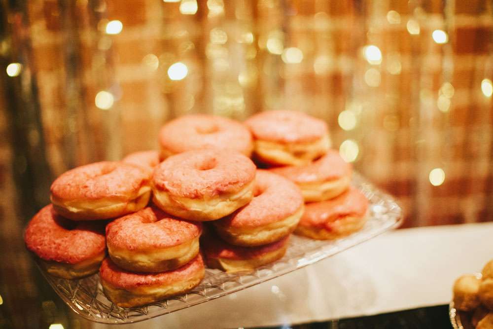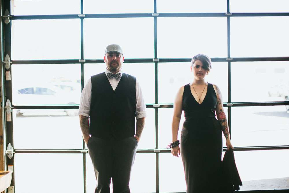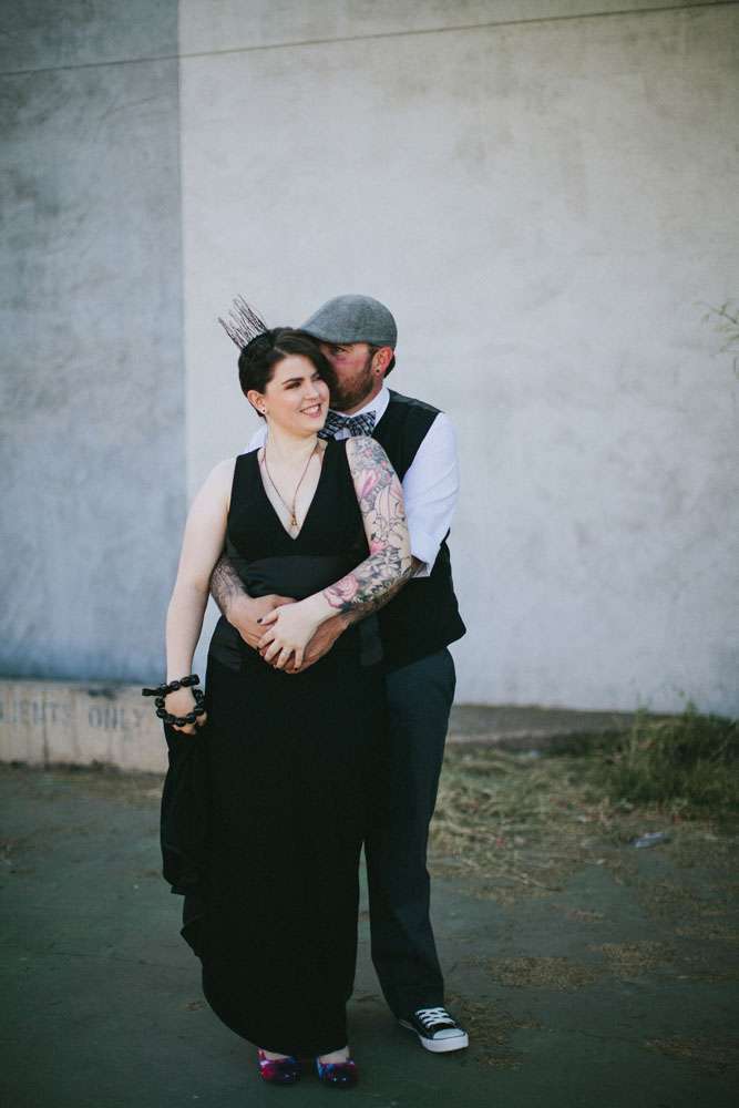 “The other things that guests commented on included the fact that our ceremony was only three minutes long and that we had a food truck to serve dinner! We also had donuts for dessert instead of a wedding cake. Another one of our favorite thing was the banner behind us at the ceremony that said ‘Fuck the world I’m hanging out with you tonight’ which is lyrics from a song by The Queers!”