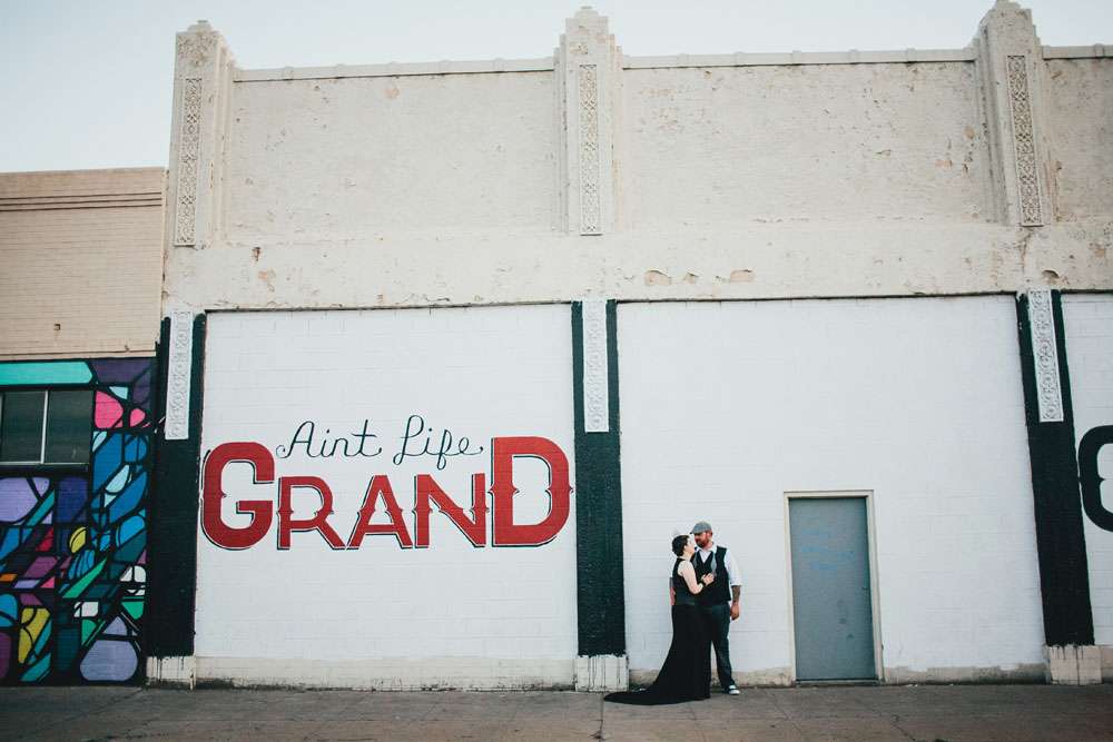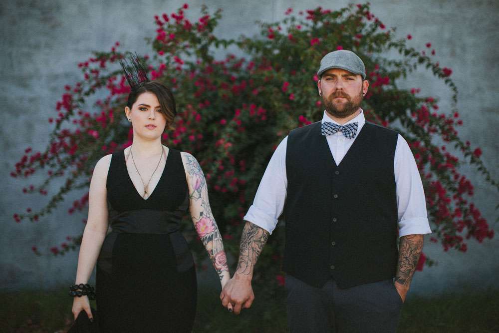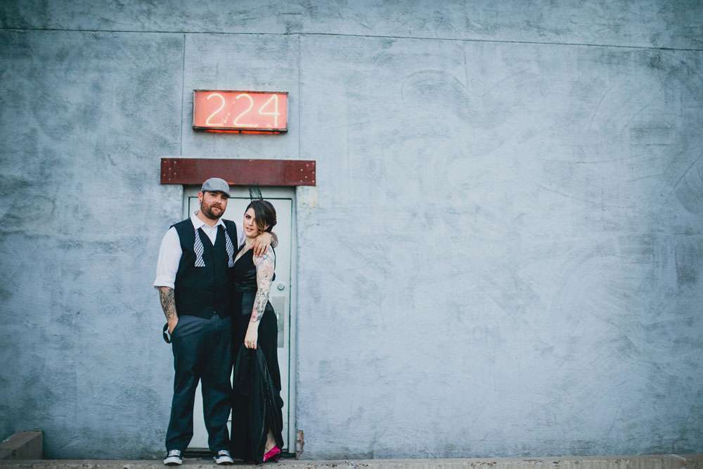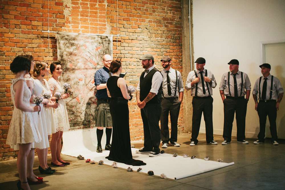 Amy and Earl were married at Legend City Studios, an art gallery in Phoenix. “We wanted our wedding to be one big Party”, explained the bride. “We went into the planning stage with one goal in mind. We wanted to have a wedding we’d love to attend. Our goal was to have fun and make sure everyone else had fun as well.”