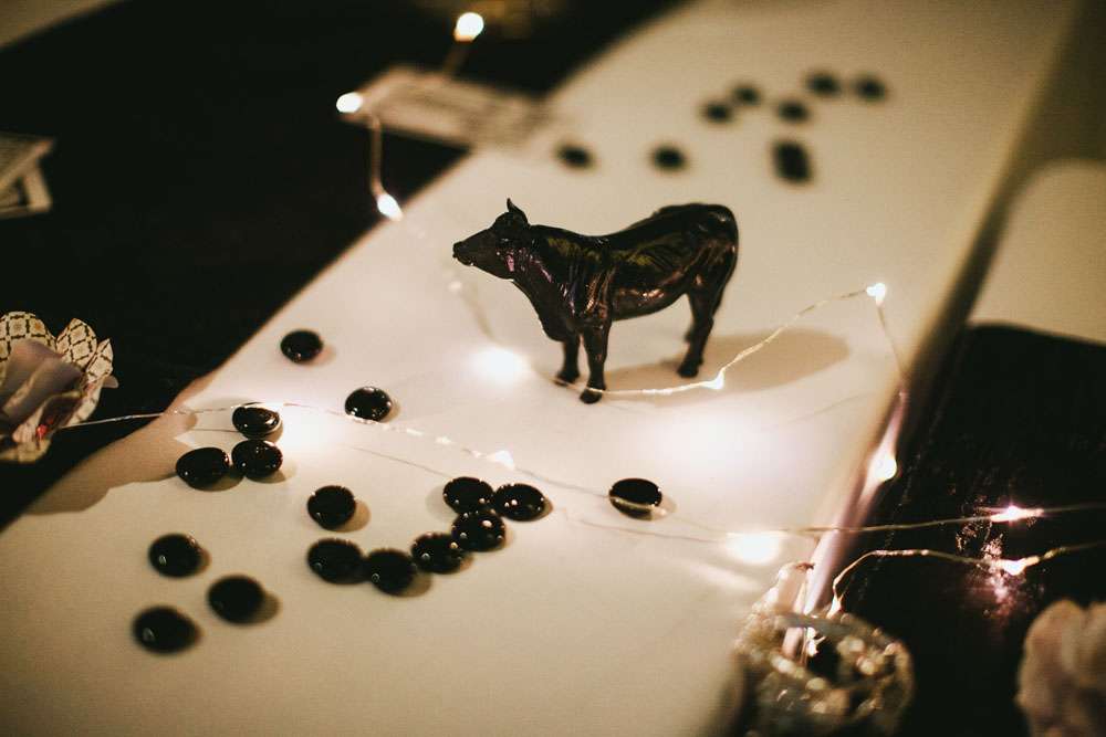 “Our biggest expense was our photographer”, she concluded. “When we met Galaxie, we were already pretty sure we were going to hire her because of her amazing images. Once we did, we had no qualms about spending over a quarter of our budget to get priceless memories of our day. However we saved money on all our décor and flowers (all DIY) and by having donuts for dessert. The décor was mostly found objects, or things we already had for one reason or another and could modify.”