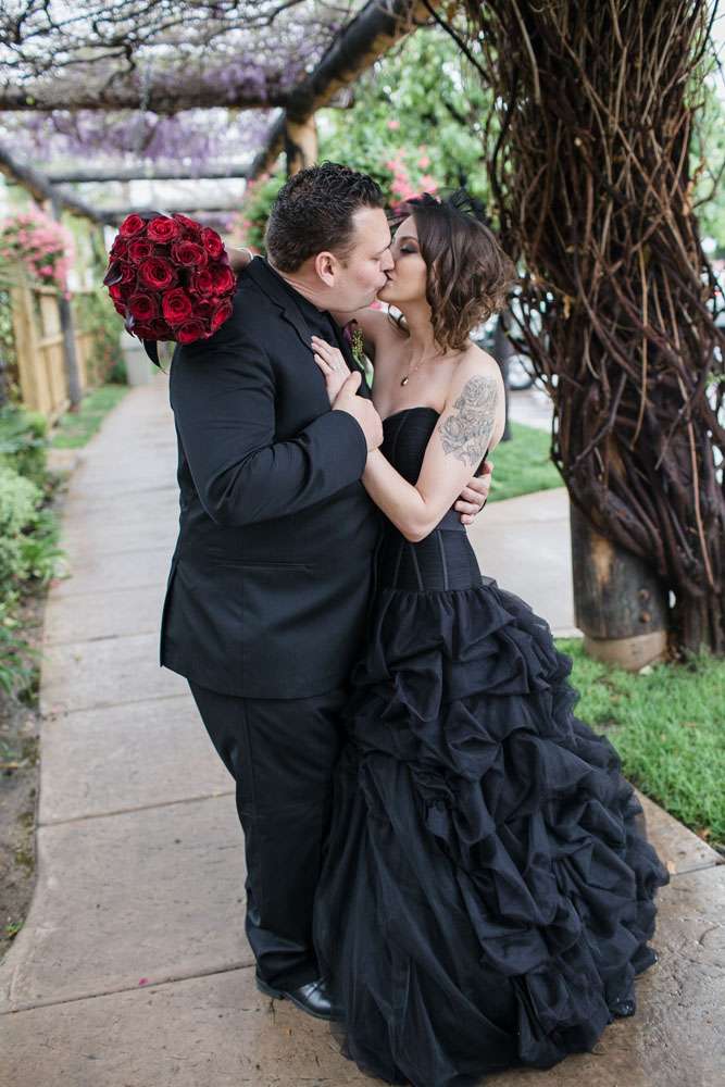 Sarah and Brandin were married at South Coast Winery in California. They both love black, the dramatic and romantic gothic style in their everyday lives, so having this as the theme of their wedding was a no brainer.