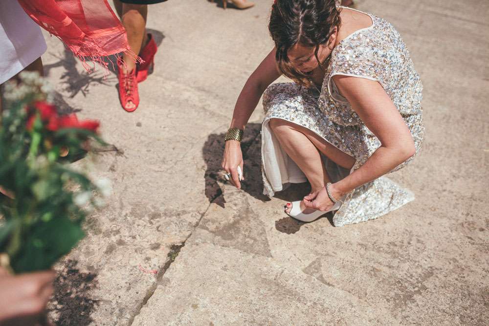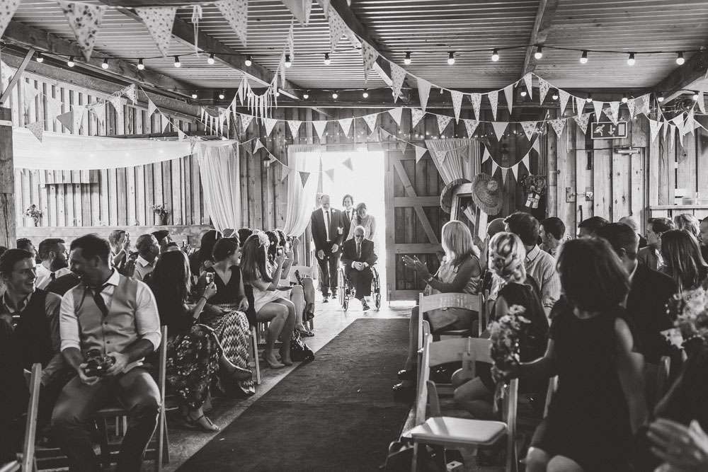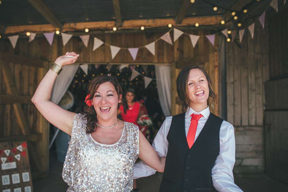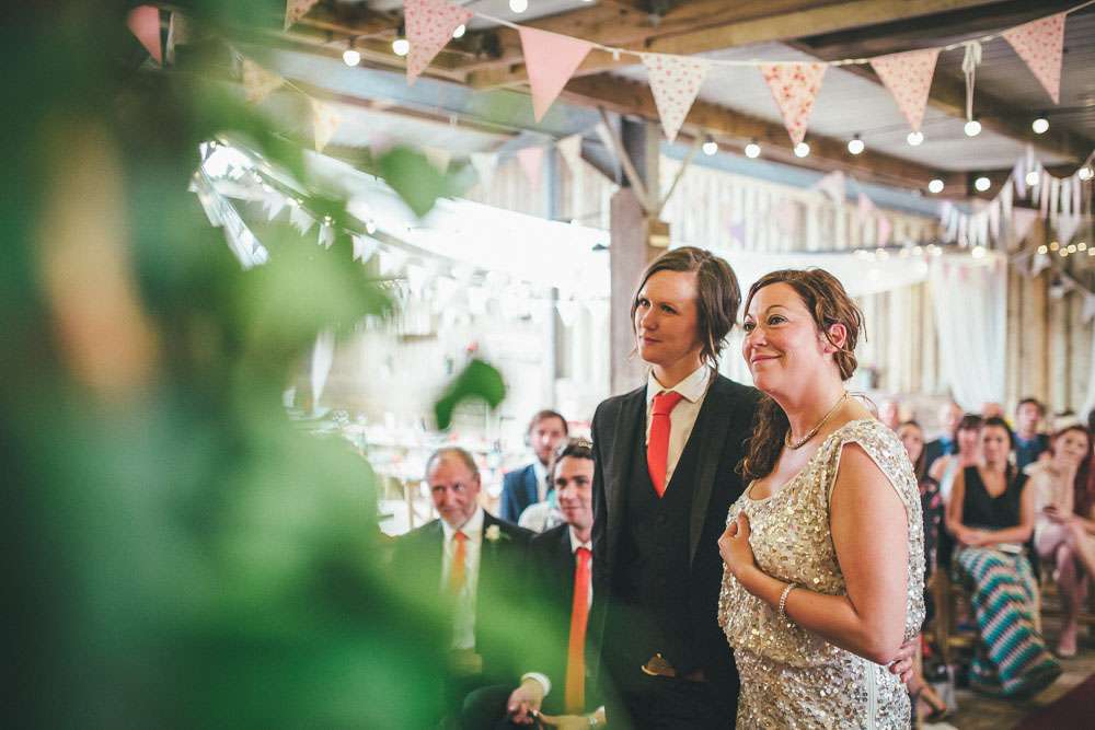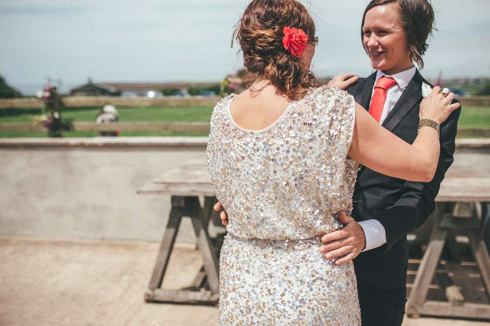 Sarah and Sibley’s wedding was held at The Barn at South Milton. They planned a day to celebrate them, the joining of their families and do have a damn good time! Spending just £7000, they saved money by wearing high street clobber (Sarah’s incredible sequinned dress from JS Collections at House of Fraser and Sibley’s snappy suit from Moss Bros) having a DIY cake, picking wild flowers and making all their own paper goods and decorations.