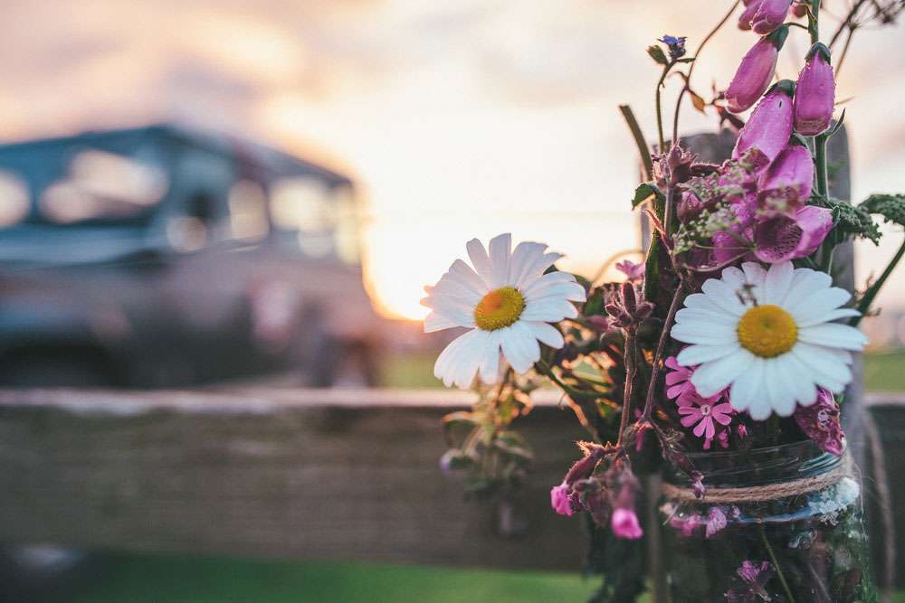 “Our biggest expense was the venue at £4000 but it was totally worth it! Paula and Paul, who own it, were on-hand all day and night, and busied and directed unnoticed the whole time. The venue price included a lot of things, like tables and chairs, heating, spring water on tap, the photo booth, table runners, jam jars and anything that was left over from previous weddings! They were so helpful and the nicest people, we couldn’t thank them enough. We also had the venue from Tuesday evening to Sunday afternoon AND camping was free onsite!”