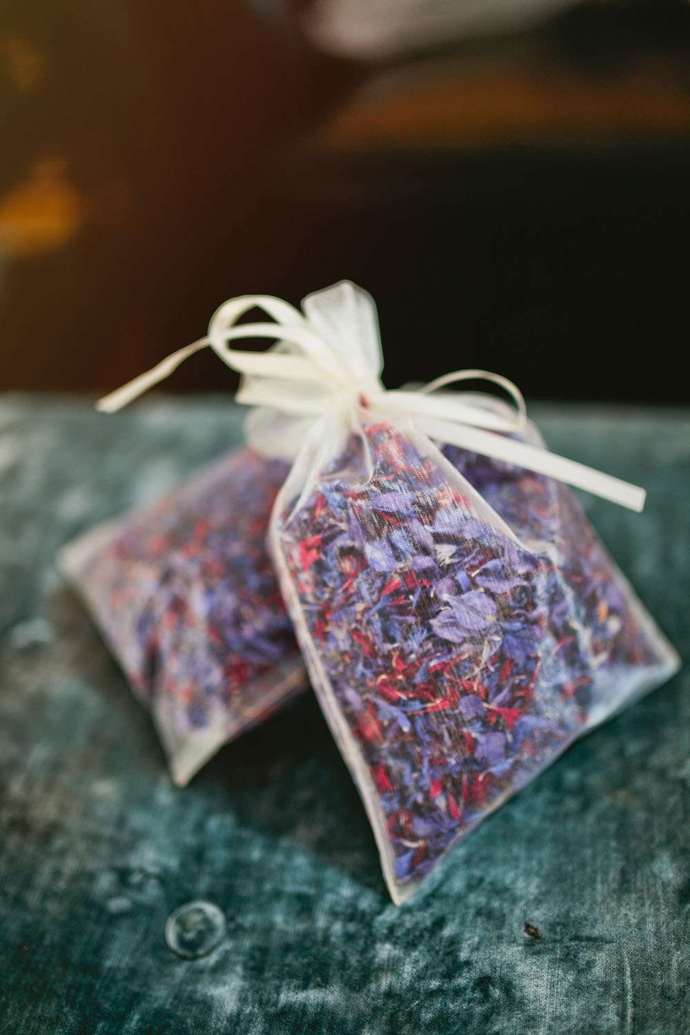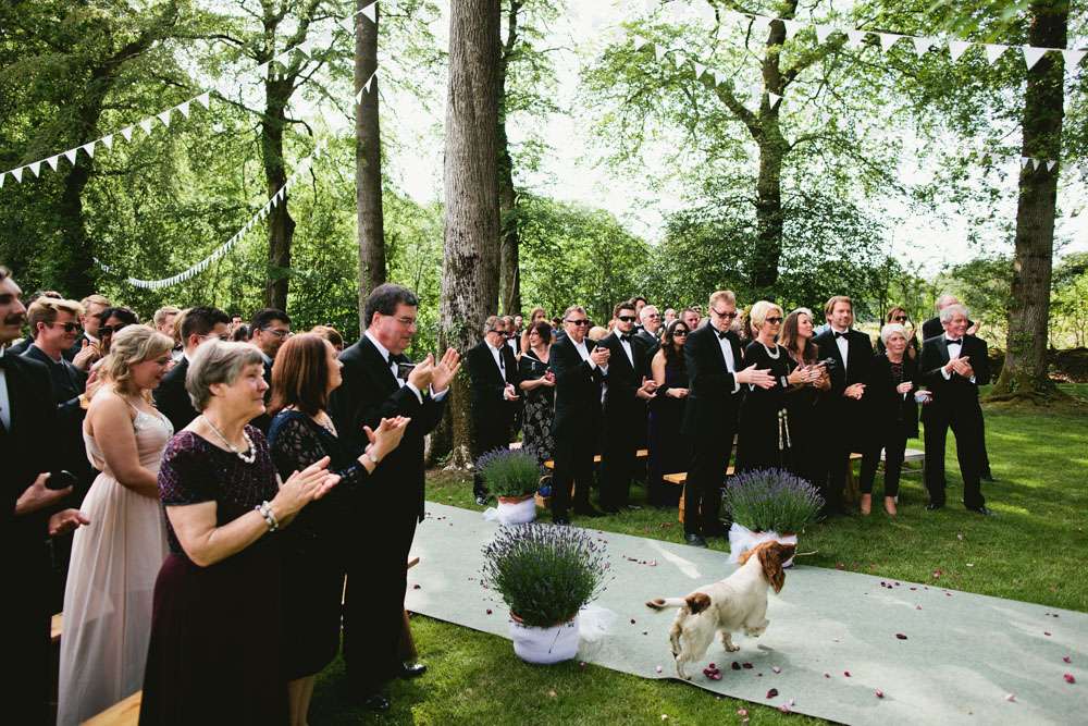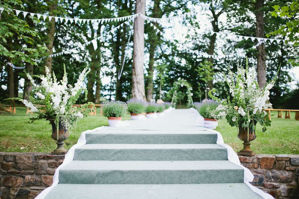 “I work in fashion and film and Sam works in advertising so we have a pretty eclectic and wonderful set of friends and family”, the bride began. “We wanted to make the most of this and knew that our lot would never pass up the opportunity to go all out glam. We made it clear from the beginning that this was not a ‘weddingy’ wedding, I even banned hats. We requested sparkly dresses for the ladies and black tie for the men. I wanted it to be a little surreal, like stumbling upon an elegant city party in the middle of the countryside. As it was the longest day of the year the sun was setting later, which we took advantage of by having an evening ceremony, this way nature complimented the fashion and the fashion complimented event.”