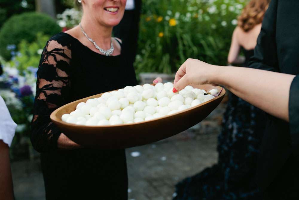 “After the ceremony we had canapés outside the tent, where we had giant bean-bags and benches everywhere”, she continued. “People were encouraged to lounge around and make themselves at home. For the dinner and speeches, I made sure that friends were sitting with friends, as to relax everyone and increase the laughter. After supper we lit beautiful handcrafted fire-pits for people to sit around, there were giant Canadian Candles in the distance and as a surprise to us an incredible display of fireworks as it went dark.”