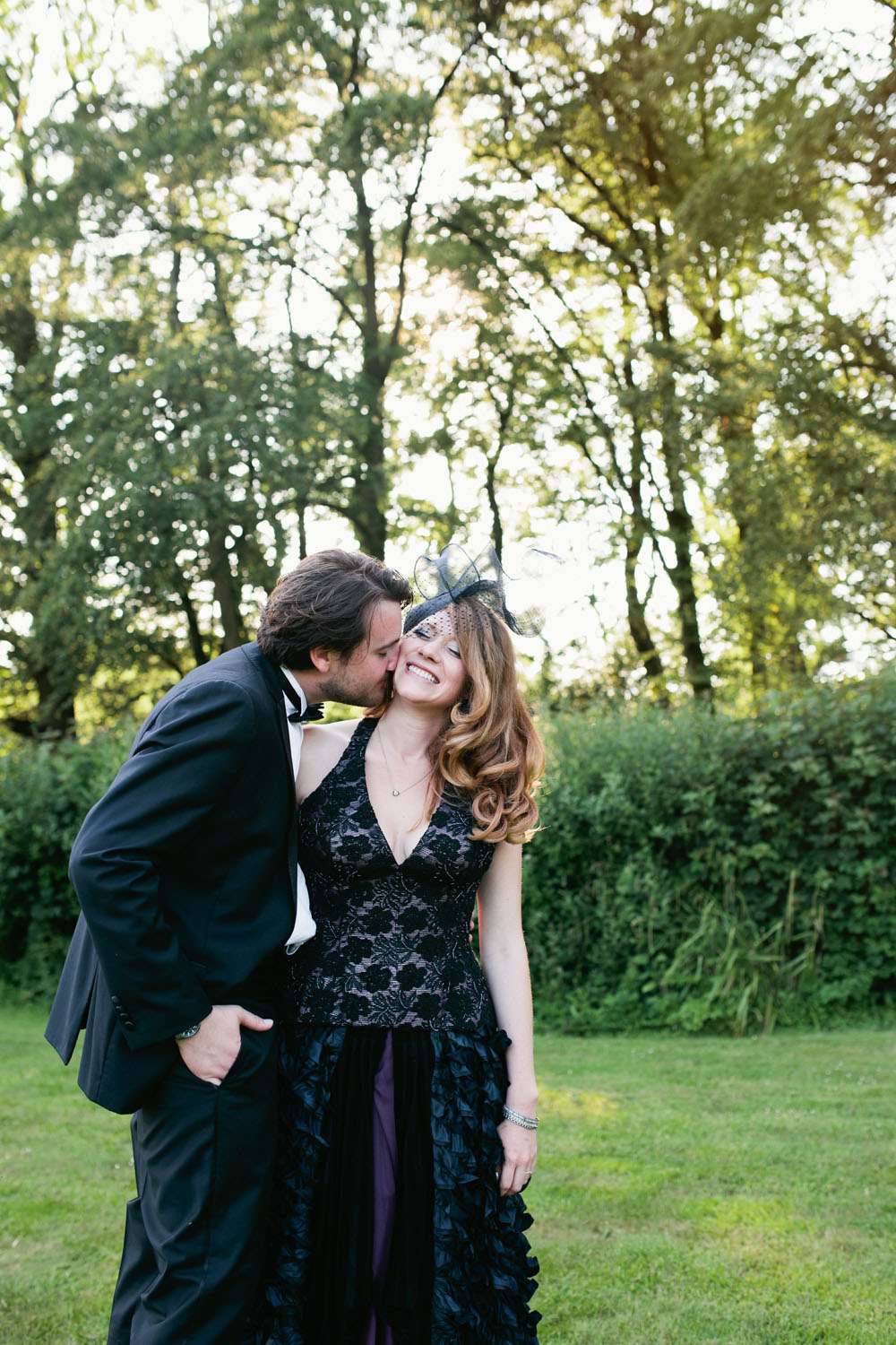 “I suppose one of the biggest factors in making our wedding unique was my black wedding dress. It had a corset top and then three skirts that each attached to one another, allowing me to take each layer off as the night progressed…the Russian doll of wedding dresses! I did splash the cash on my wedding dress… because it had to be done. I ended up with a haute couture gown that can be worn again that suited my personality to the ground.”