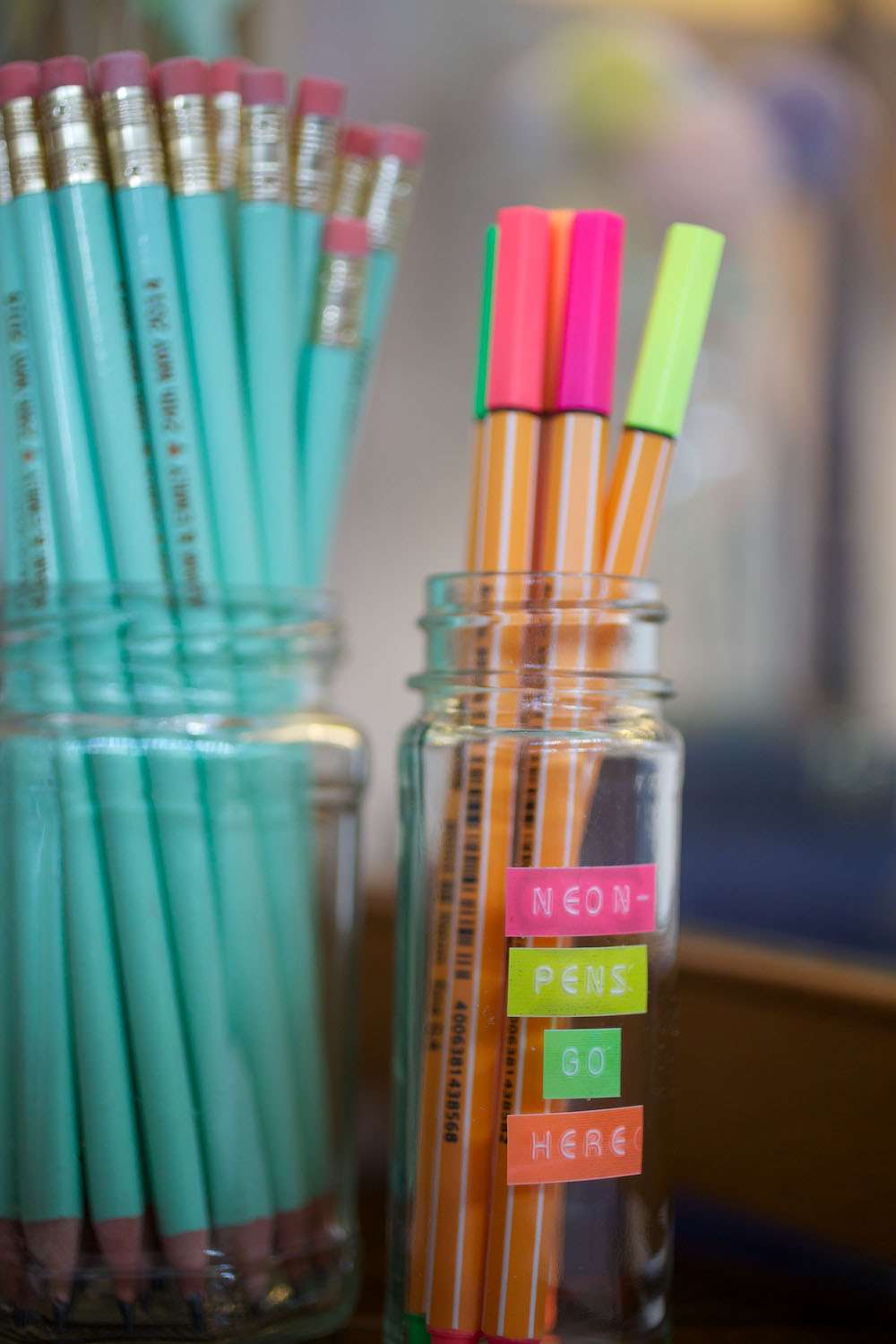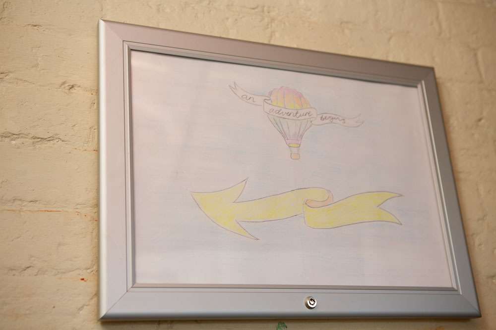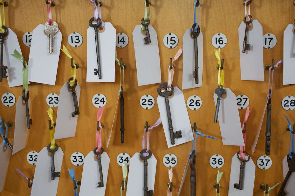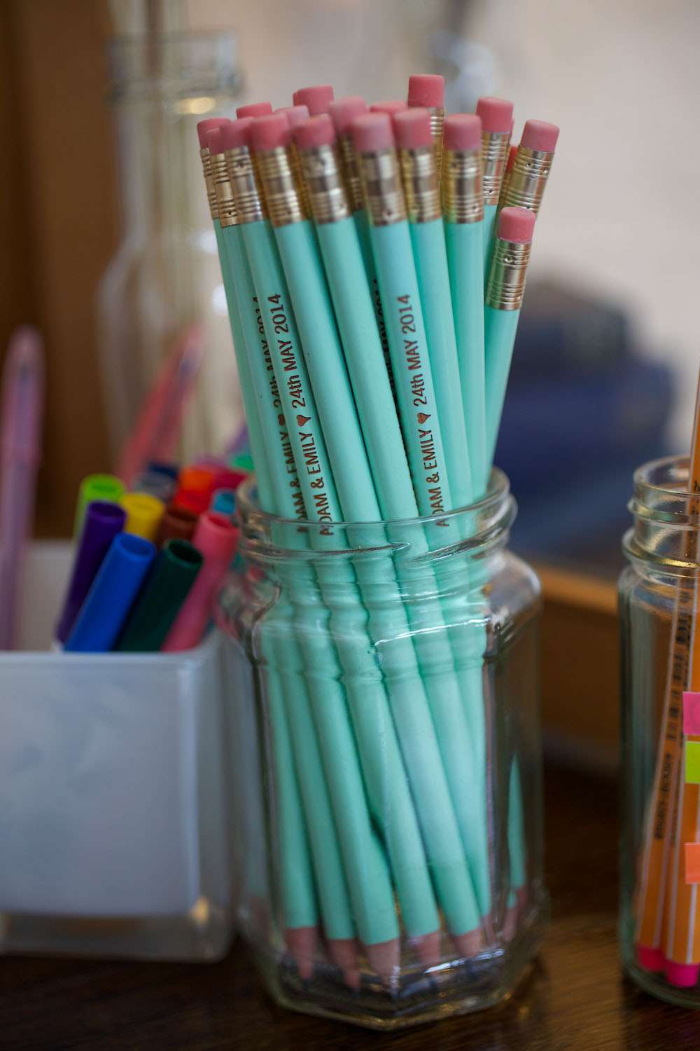 “We keep a guest book at home so wanted to do something a little different for people to leave messages. We looked at some great ideas on Pinterest but when we saw an old hotel key cabinet on the market one day Adam had the amazing idea to use it as a sort of guest book. We collected old keys and painstakingly cleaned them before attaching them to luggage tags with ribbon in our colours. Guests then got to write a message on them and we’ll be able to hang it on our wall as a lovely reminder of the day and all our wonderful friends who were there.”