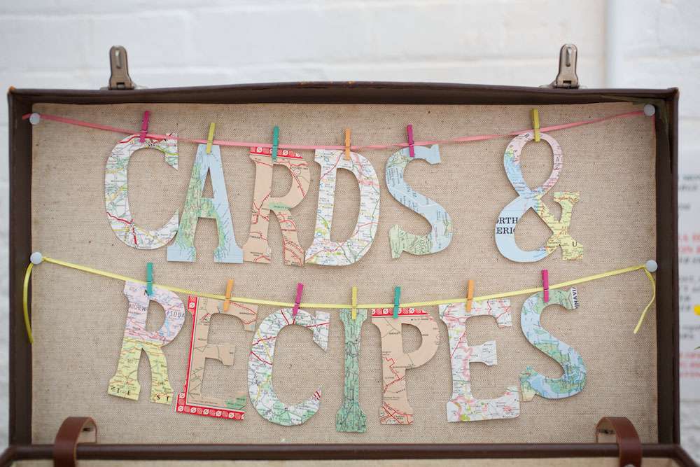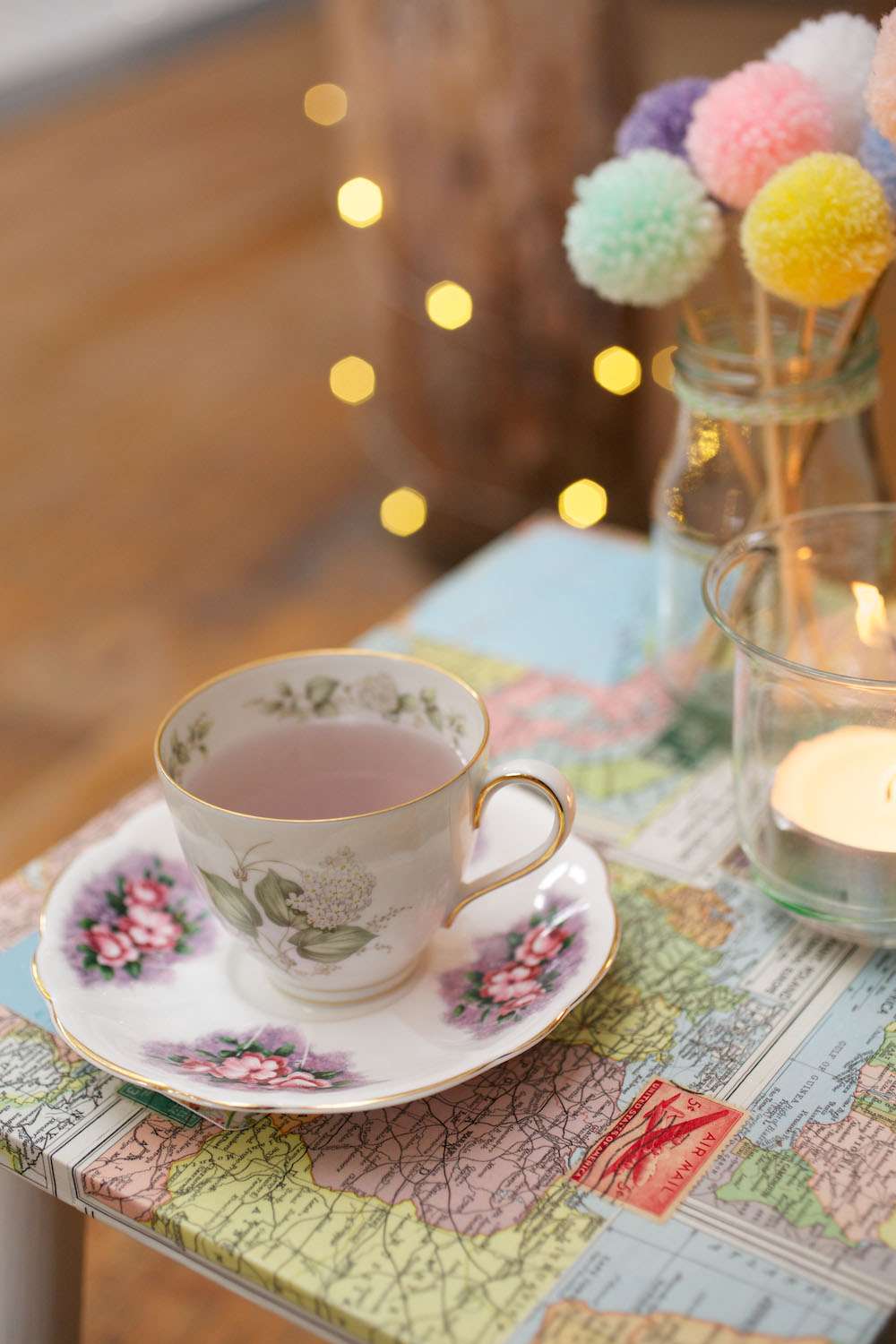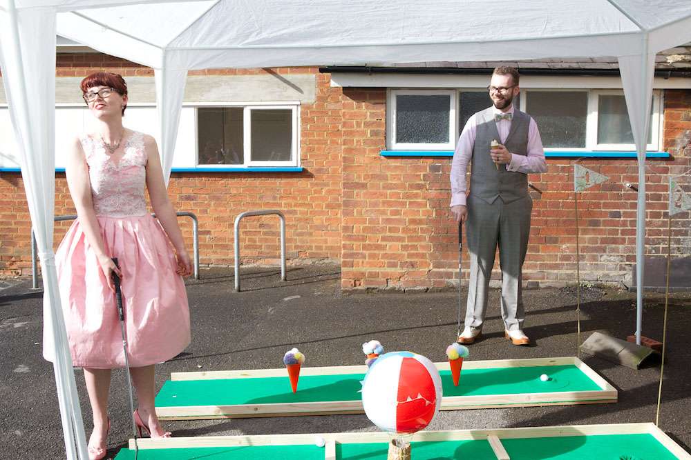 “We had a great time making the crazy golf together in the garden the week before the party, and I got pretty good at upcycling cheap furniture we found on the market, painting it in our colours and adding vintage maps to the tops. It’s great that there are so many things we’ll have around the house to remind us of our wedding.”